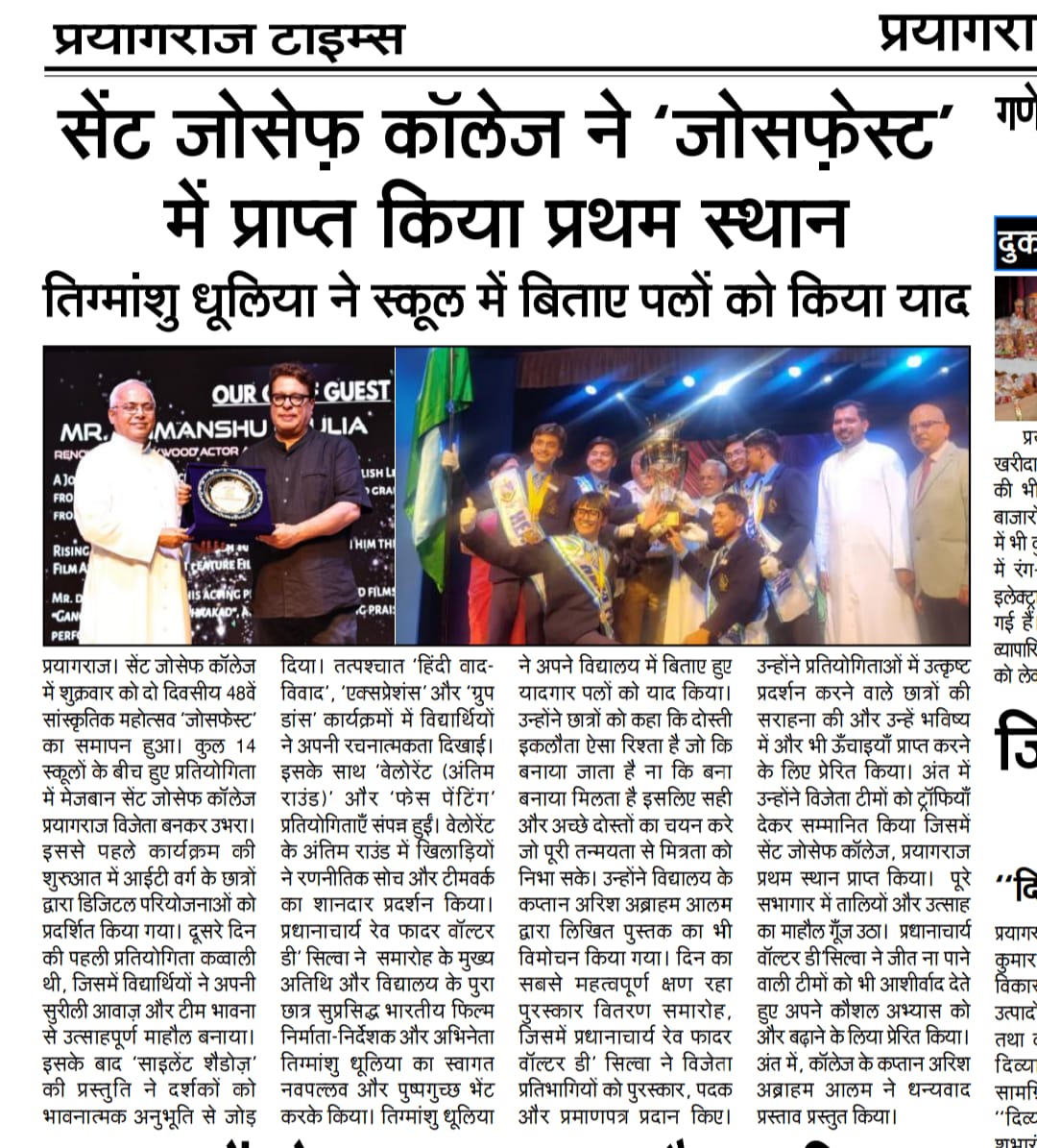 "St. Joseph’s College, Prayagraj, is a premier institution committed to academic excellence, character building, and holistic development. With a rich legacy of quality education, we nurture students to become responsible global citizens. Our curriculum, state-of-the-art facilities, and dedicated faculty ensure a dynamic learning environment. Join us to embark on a journey of knowledge, values, and success!