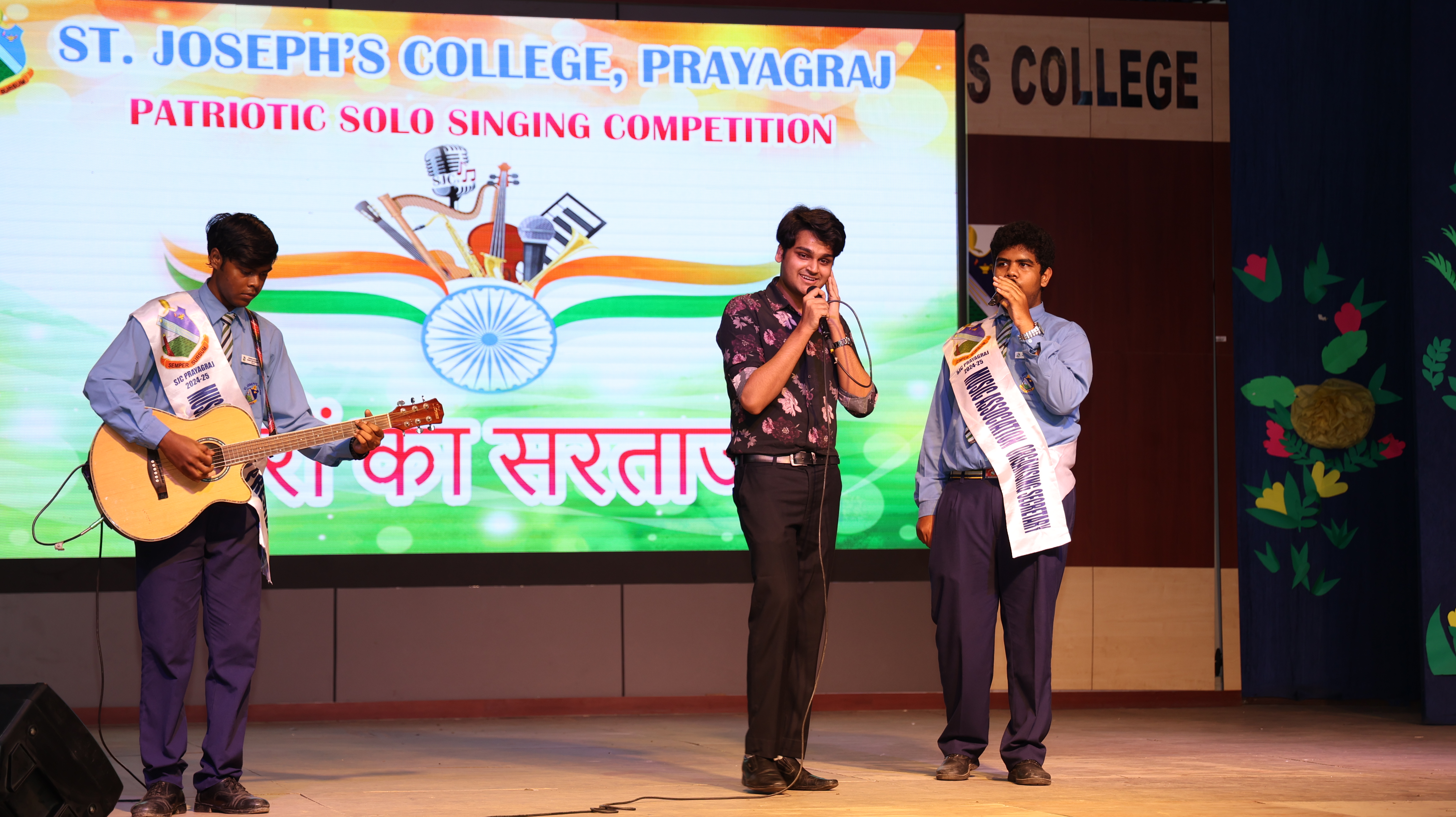 The Patriotic Hindi Solo Singing Competition would not have occupied an important place on the calender had it not been for the support of our Principal, Rev. Fr. Walter D'Silva who encouraged our students to celebrate their love for music and patriotism. The school resonated with patriotism as students from Classes 6, 7, and 8 showcased their musical talents in the Patriotic Singing Competition held on the 12th of August, 2024 and for Classes 9 - 12 on the 13th of August, 2024. The judges for Classes 6 to 8 were Dr. (Mrs.) Ayona Bose Chatterjee and Mr. Ayan Ansar. Mr. Raagamaan, Mr. Ayan Ansar and Mr. Lakshya Dwivedi were the judges for Classes 9 - 12. The judges graced the event, evaluating the performances with great care. Their expertise ensured that the best talents were recognized and rewarded. A special prize for the most incredible voice, " Suro ka Sartaaj " was awarded to Adwit Rajaram in the Classes 6 - 8 category and Sarvesh Krishna in the 9 - 12 category by the Additional Administrator, Mr. A. McGowan and the Staff Coordinator, Mr. Jyoti Dube. The singers captivated everyone with their exceptional talent. The Competition was organized by the Music Association, headed by the Chairperson, Mrs. Charmaine Wesley and Mr. Saubhagya Nayak. The event was a resounding success, reflecting the students' love for the Nation through soulful renditions of patriotic songs.