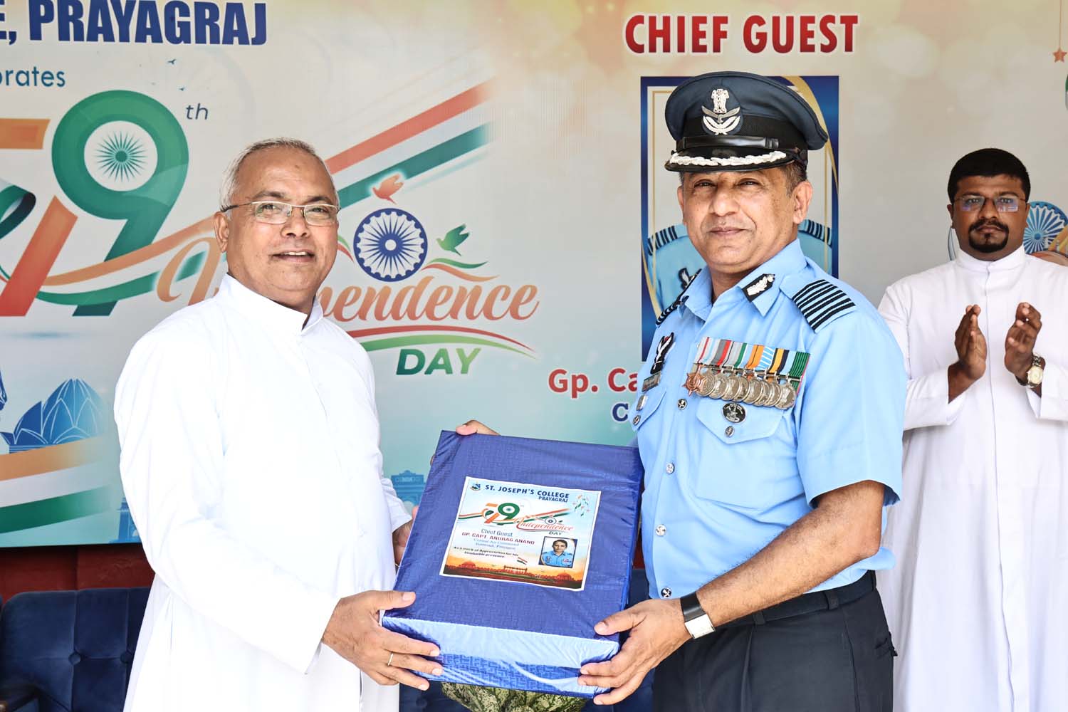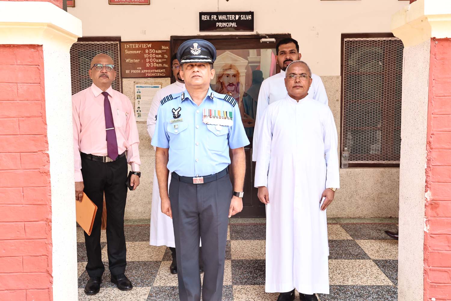Group Captain Anurag Anand, the Chief Guest was escorted to the dais with due respect. The Principal Rev. Fr. Walter D'silva introduced the Chief Guest. Group Captain Anurag Anand was commissioned in the IAF on 19th December 1992 at Airforce Academy Hyderabad. Over the course of 32 years of dedicated service to the nation, he has served with distinction in all parts of India. For his exemplary service, he has been honoured with the Chief of Air Staff Commendation and the Air Officer Commanding-in-Chief Commendation twice.