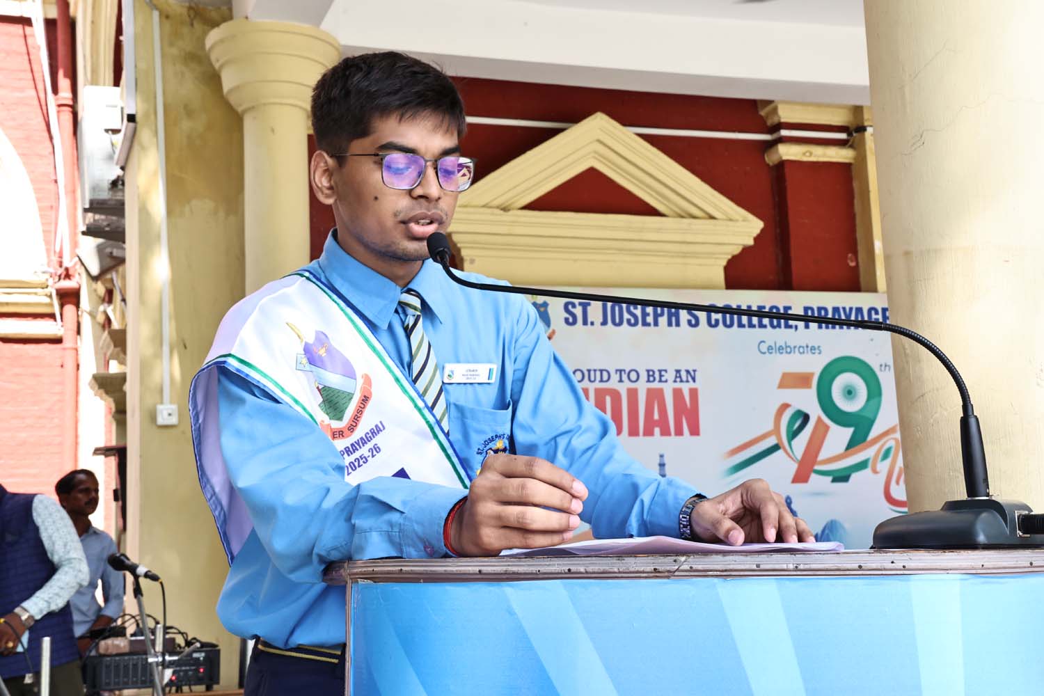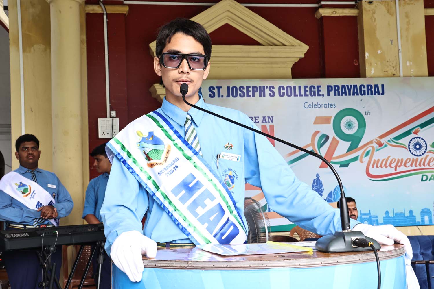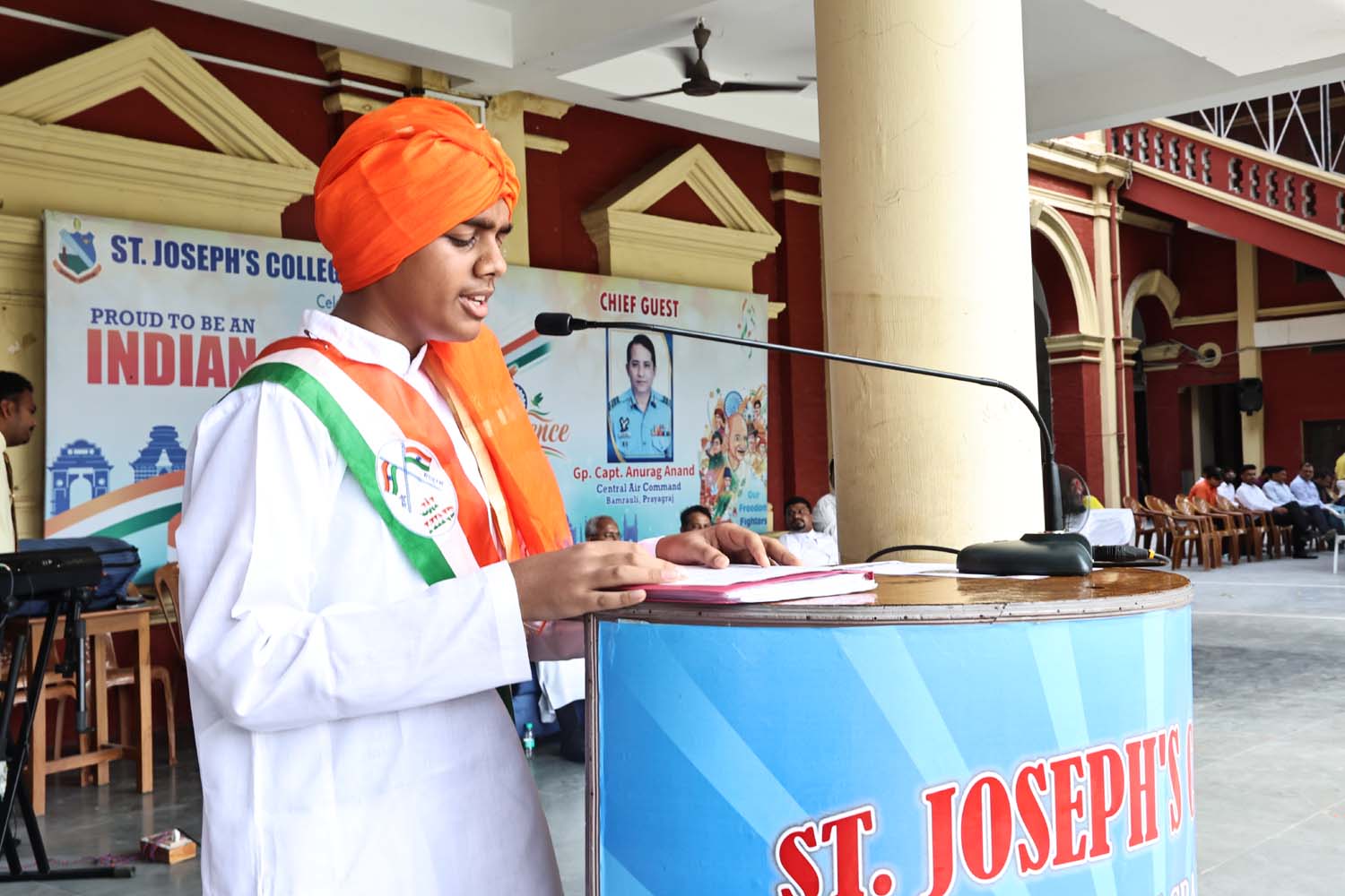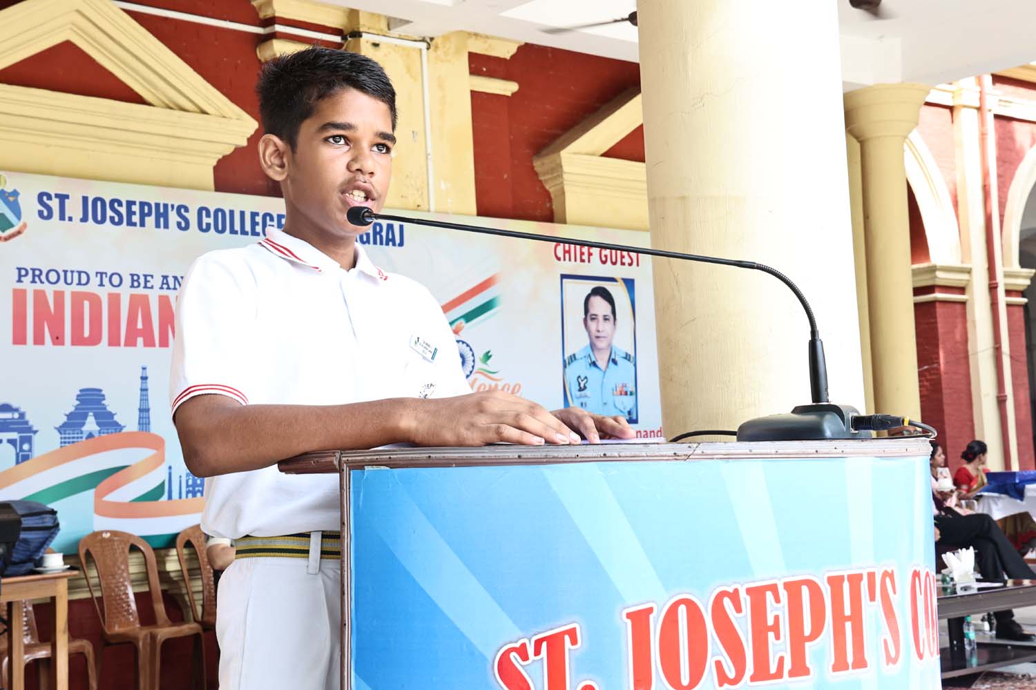 The Junior College Captain’s speech on India’s 79th Independence Day at St. Joseph’s College celebrated the freedom achieved on 15th August 1947 through the efforts of countless leaders. It encouraged students to honour this legacy with responsibility, unity, and respect, pledging to maintain cleanliness, study diligently, and uphold justice. The address concluded with gratitude to guests and staff, ending with “Jai Hind!”