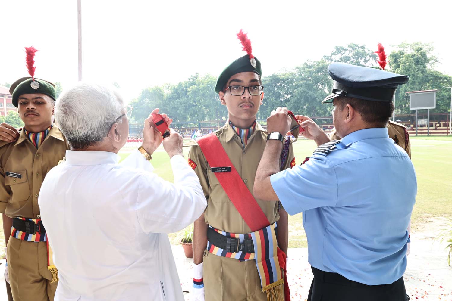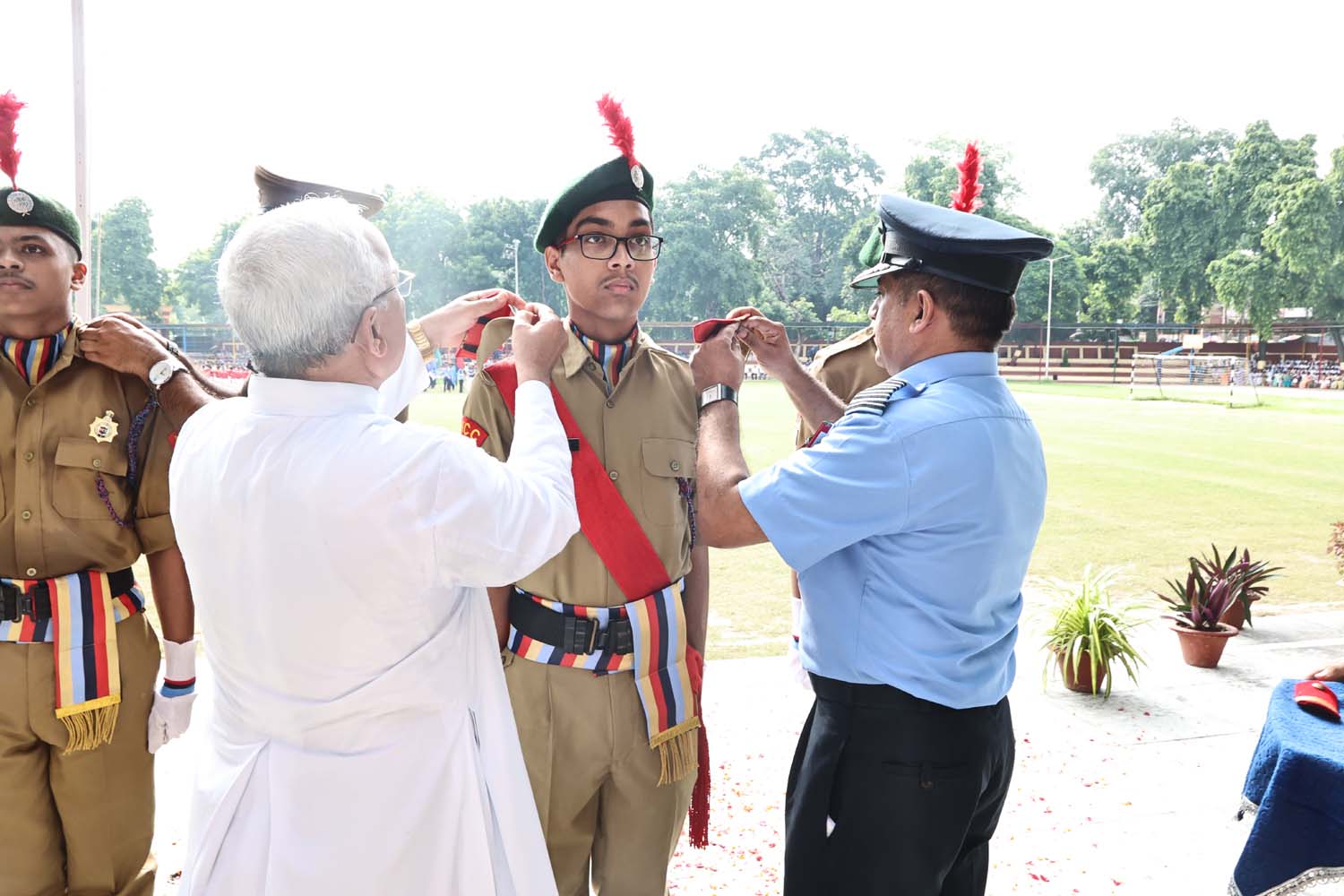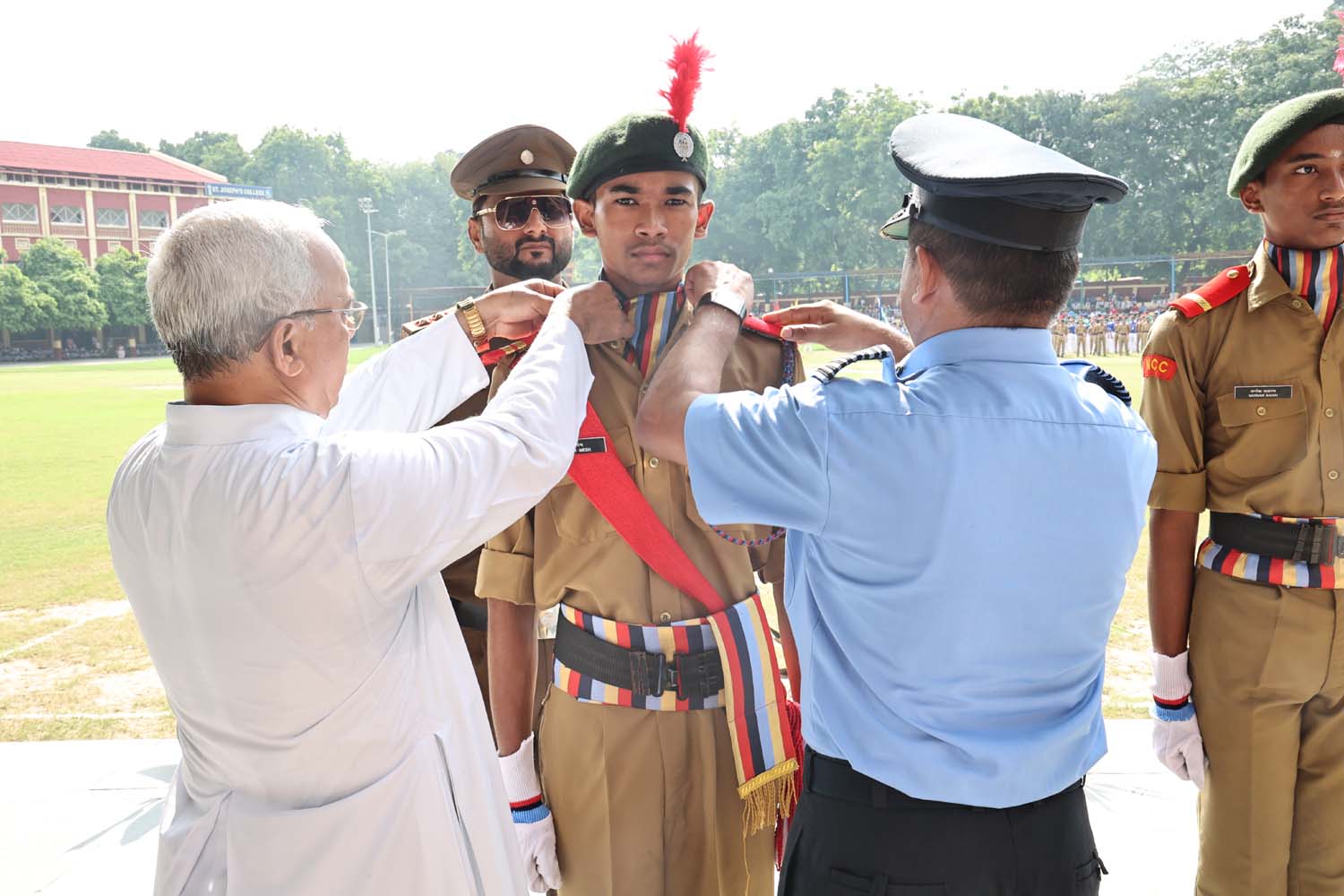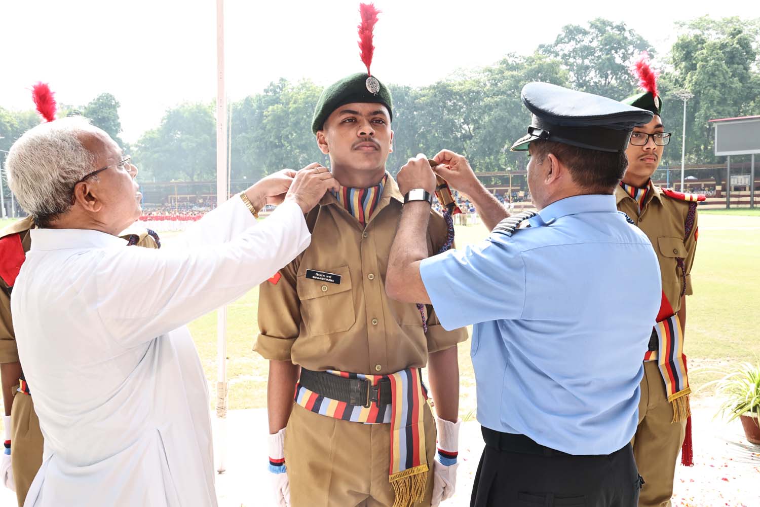 The Pipping Ceremony was held with great pride and solemnity, marking an important milestone in the journey of our young leaders. The event was graced by our esteemed Chief Guest, Group Captain Anurag Anand, and our respected Principal, Rev. Fr Walter D'Silva, who jointly honoured the cadets for their achievements. During the ceremony, the following boys were formally invested with their ranks and responsibilities: