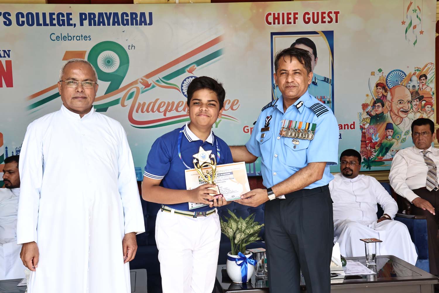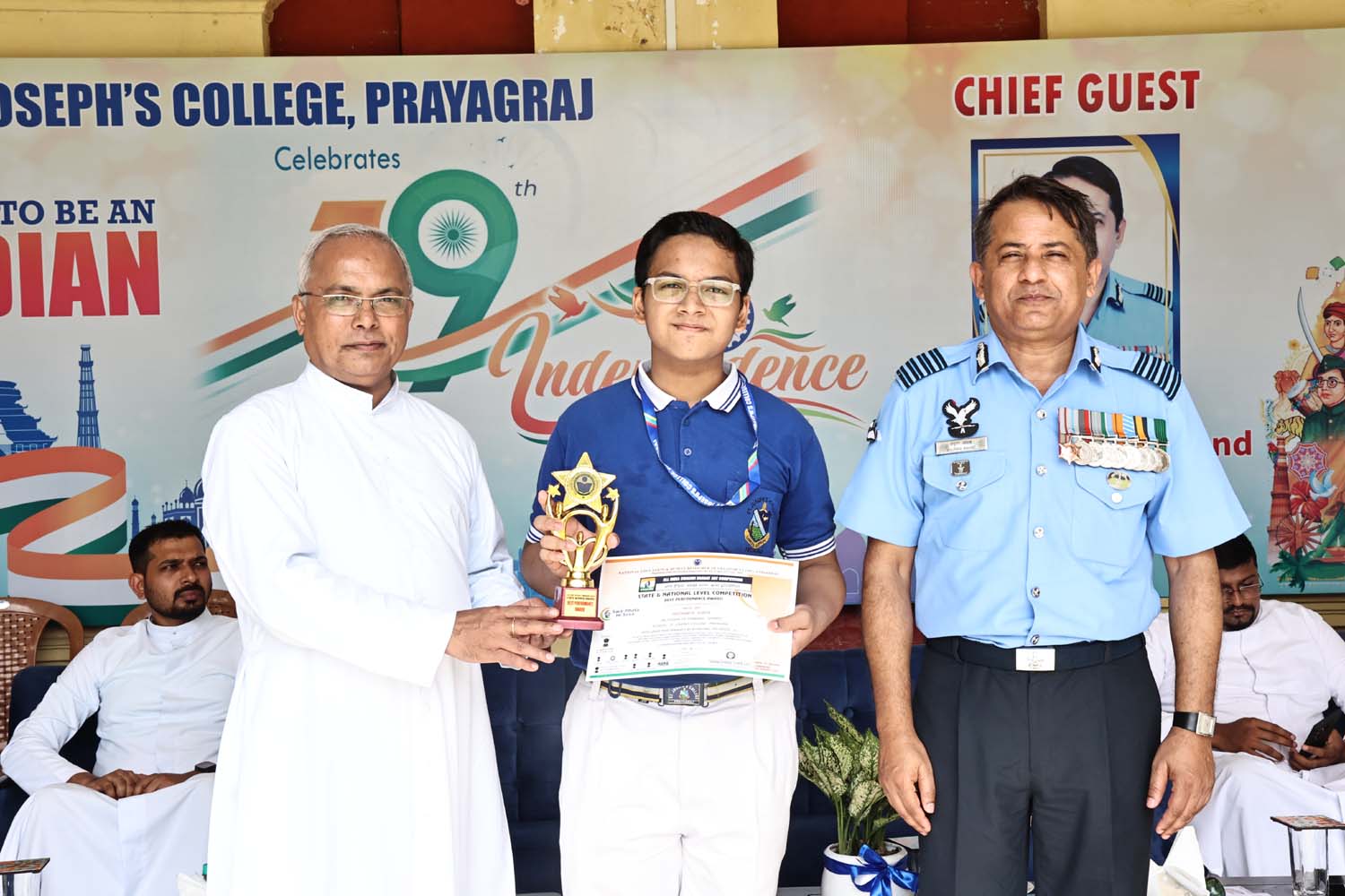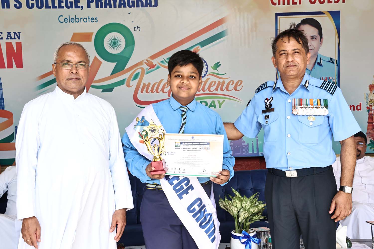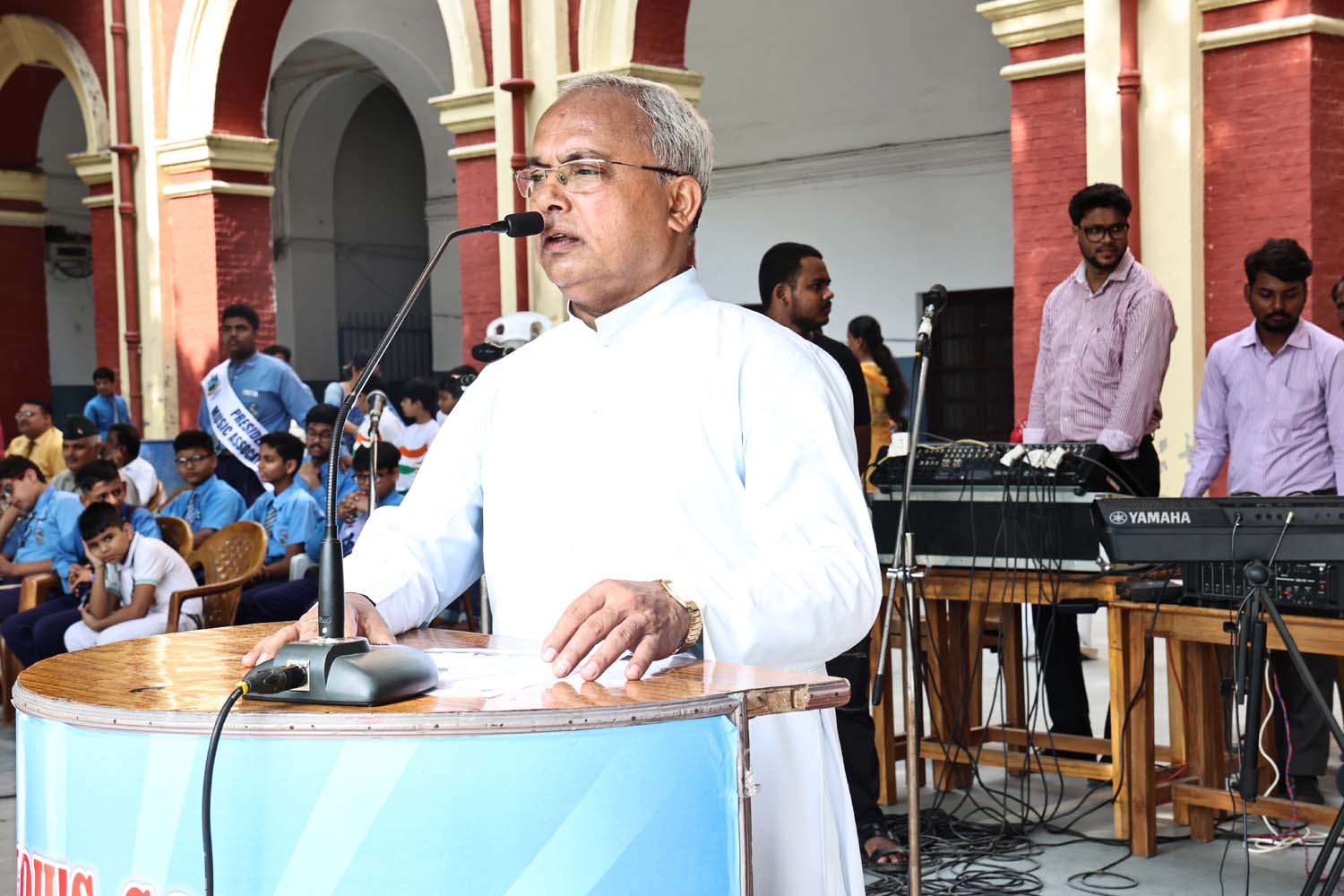 The March Past, executed with precision, showcased the discipline and unity of the students. The Principal Rev. Fr Walter D'Silva delivered a heartfelt welcome speech, highlighting the significance of Independence Day. He emphasised the efforts and sacrifices made by the soldiers who are ever vigilant and instrumental in safeguarding the borders and ensuring every citizen breathes in free air. He also dwelt upon the need to be aware of their incredible efforts in making our country prosper. The mood lightened with a soulful solo song performed by the winner of a recent competition, Sarthak Tripathi, captivating the audience.