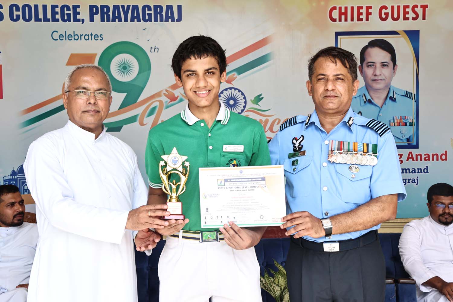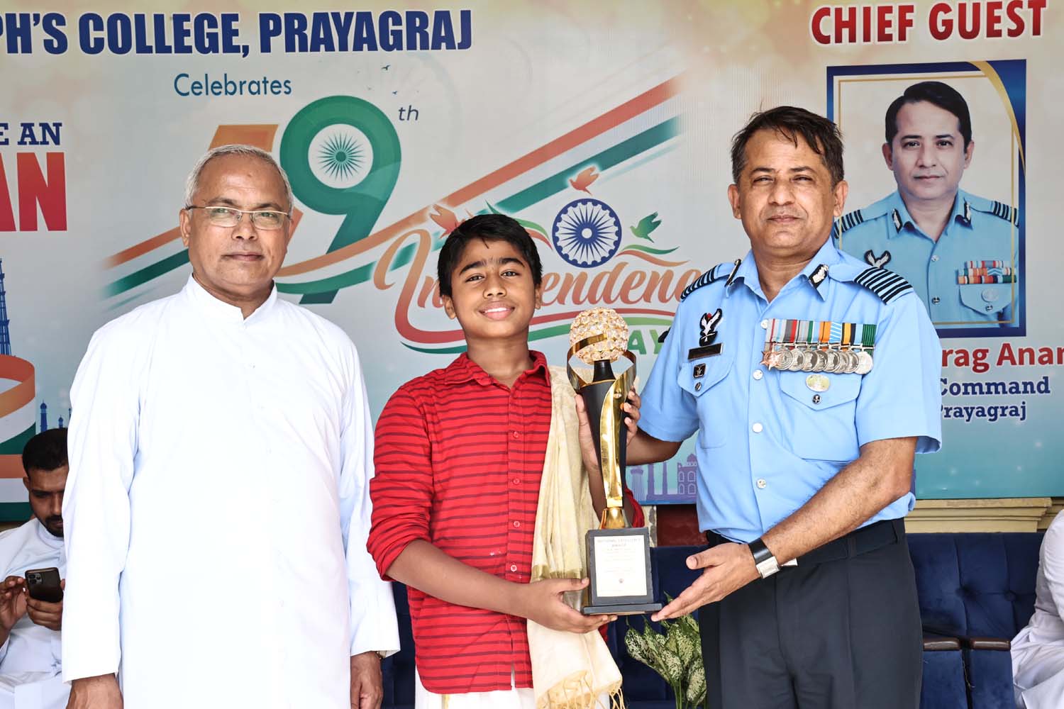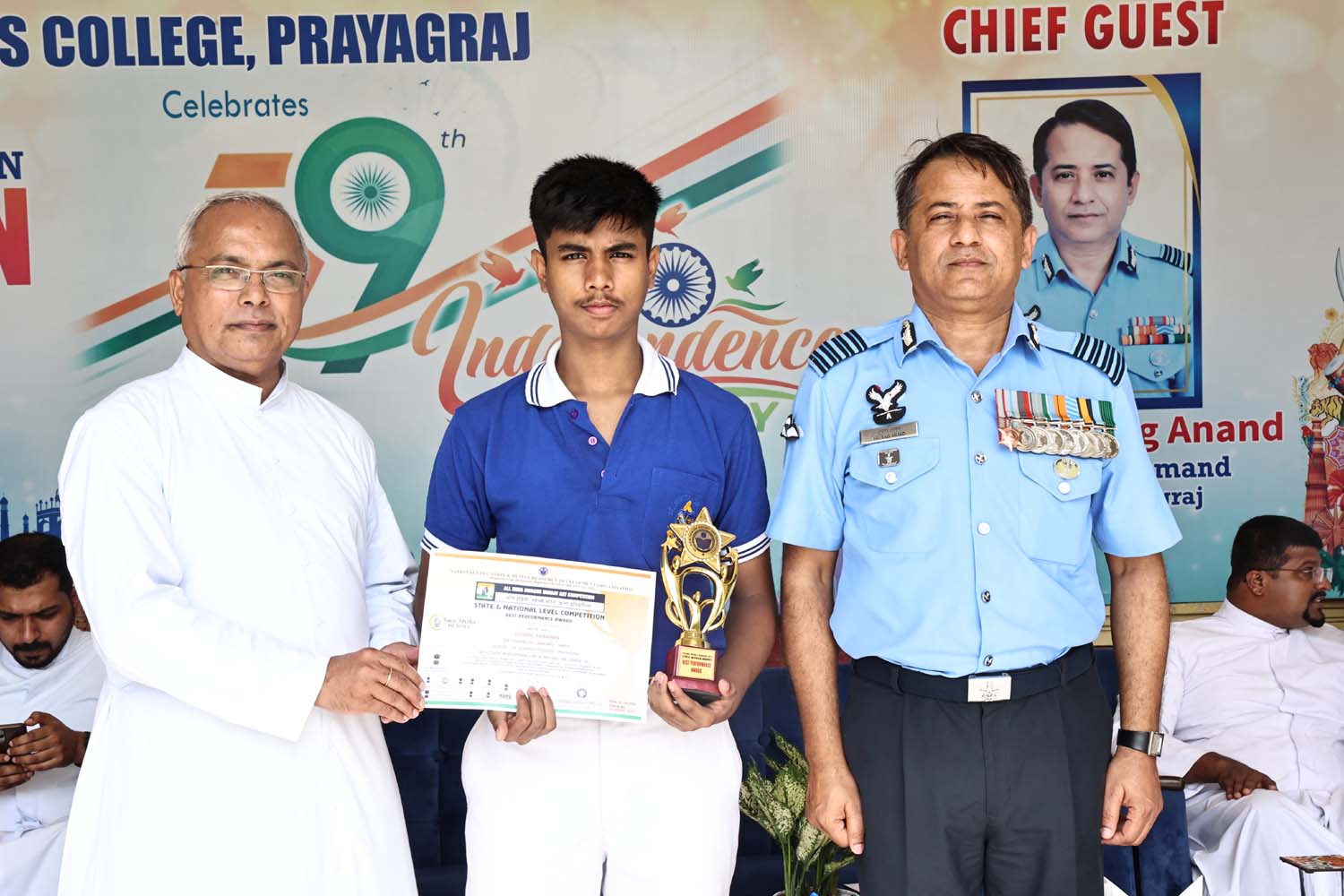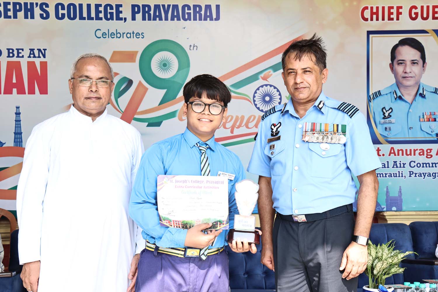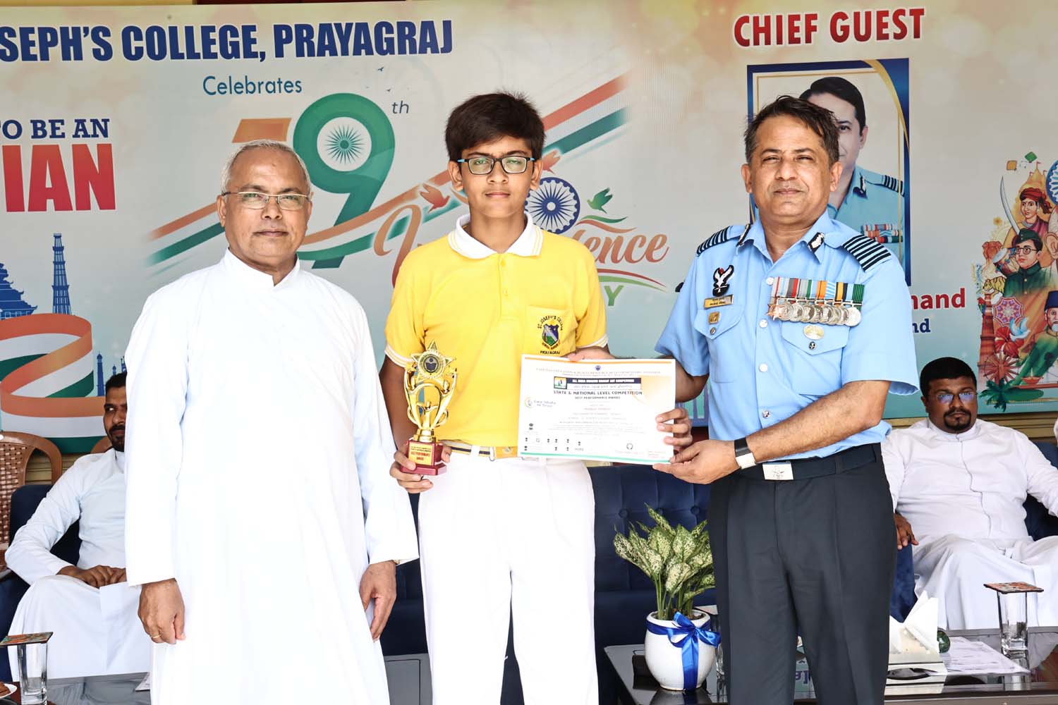 The March Past, executed with precision, showcased the discipline and unity of the students. The Principal Rev. Fr Walter D'Silva delivered a heartfelt welcome speech, highlighting the significance of Independence Day. He emphasised the efforts and sacrifices made by the soldiers who are ever vigilant and instrumental in safeguarding the borders and ensuring every citizen breathes in free air. He also dwelt upon the need to be aware of their incredible efforts in making our country prosper. The mood lightened with a soulful solo song performed by the winner of a recent competition, Sarthak Tripathi, captivating the audience.