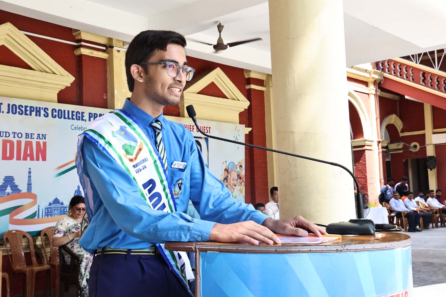 Freedom is never dear at any price. It is the breath of life,” declared Mahatma Gandhi, encapsulating the spirit that ignited the vibrant Independence Day celebration in St. Joseph's College on 15th August 2025. With hearts brimming with patriotism and pride, the event unfolded under the adept guidance of Master of Ceremony, Shayaan Zaman, whose charisma ensured a seamless and spirited programme. The following report outlines the draft schedule of this memorable occasion: