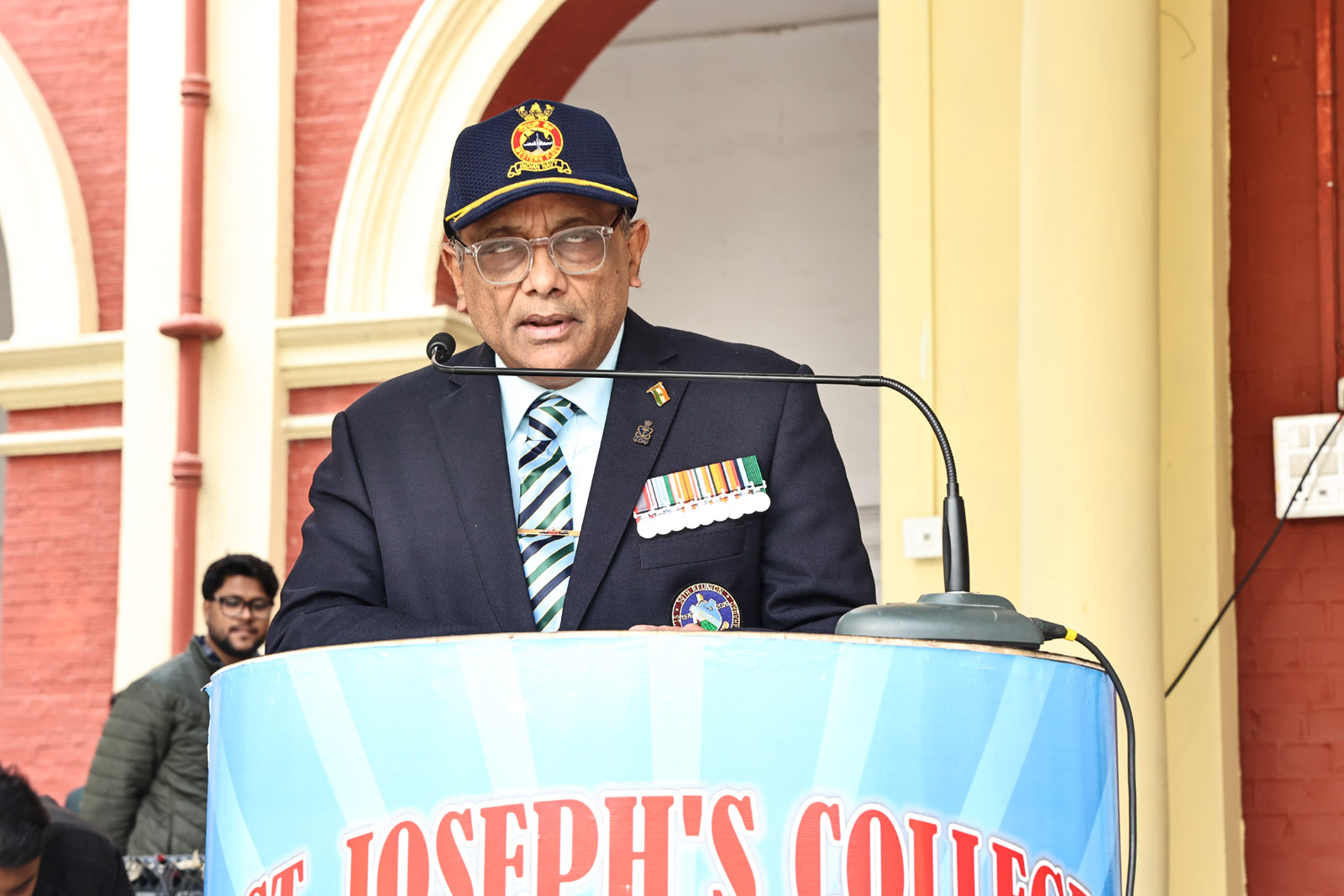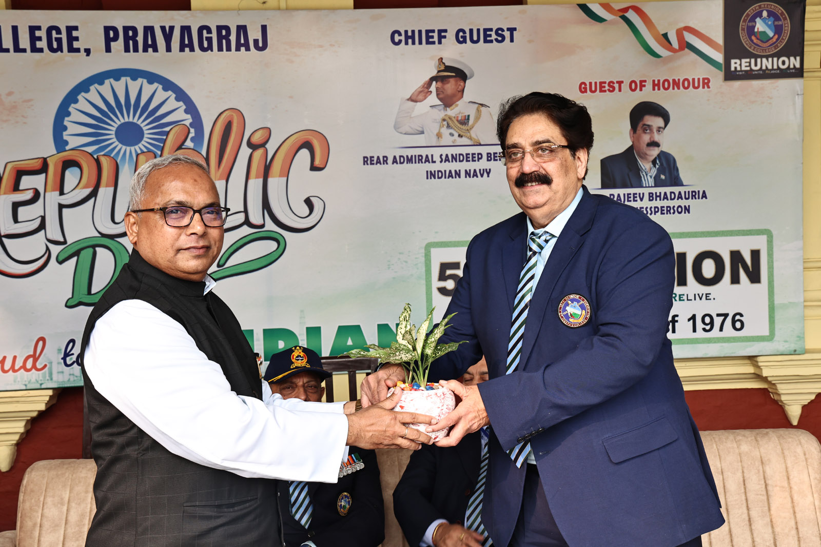 Subsequently, Ms M. Paul introduced the Chief Guest, Rear Admiral Sandeep Beecha (Retd.), a distinguished alumnus of the 1976 batch of St. Joseph’s College, Prayagraj. His inspiring journey from the Merchant Navy to the Indian Navy stands as a shining example of discipline, leadership, and unwavering dedication to the nation. After the introduction, he was honoured with the presentation of a sapling as a mark of respect.