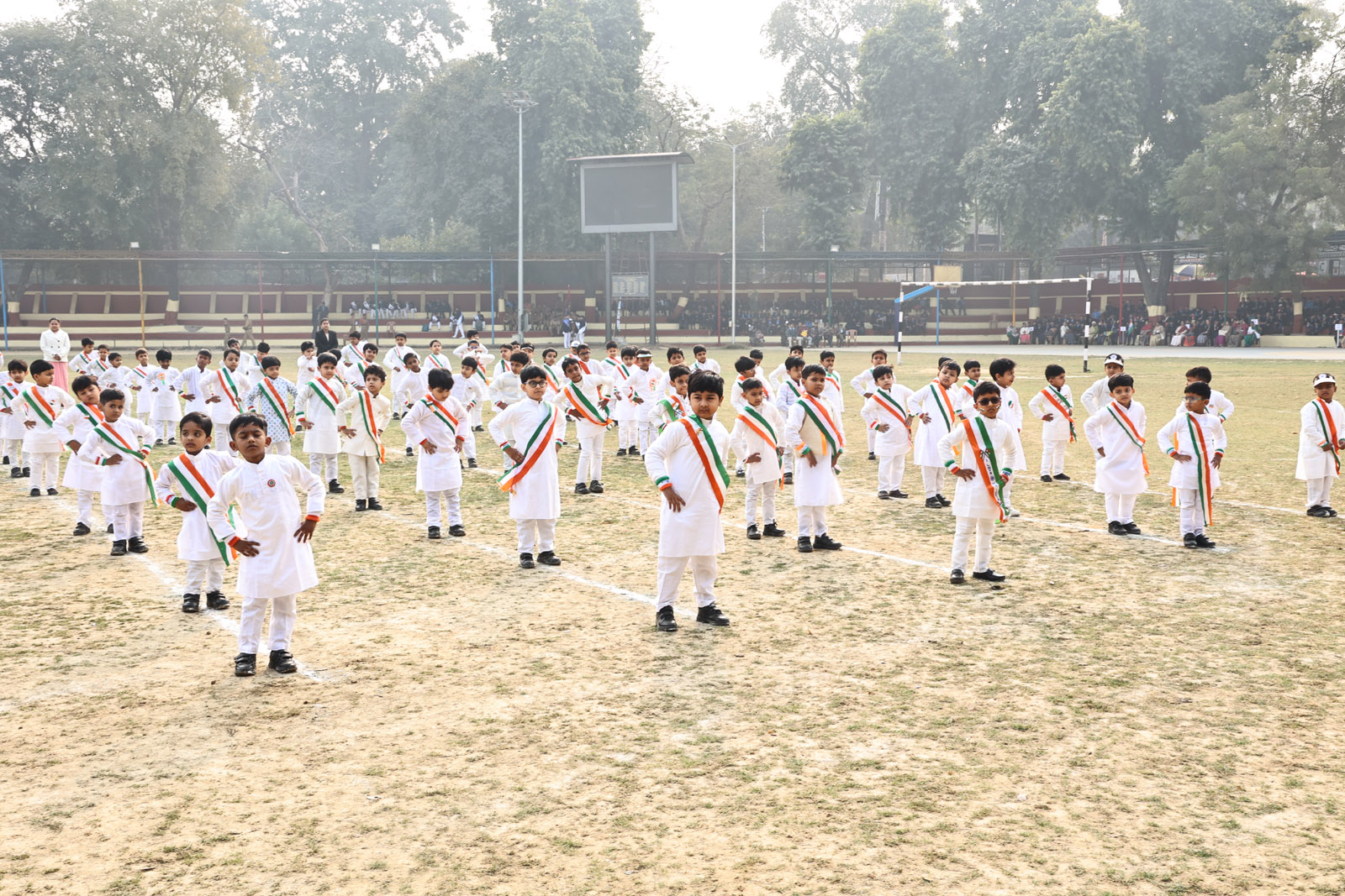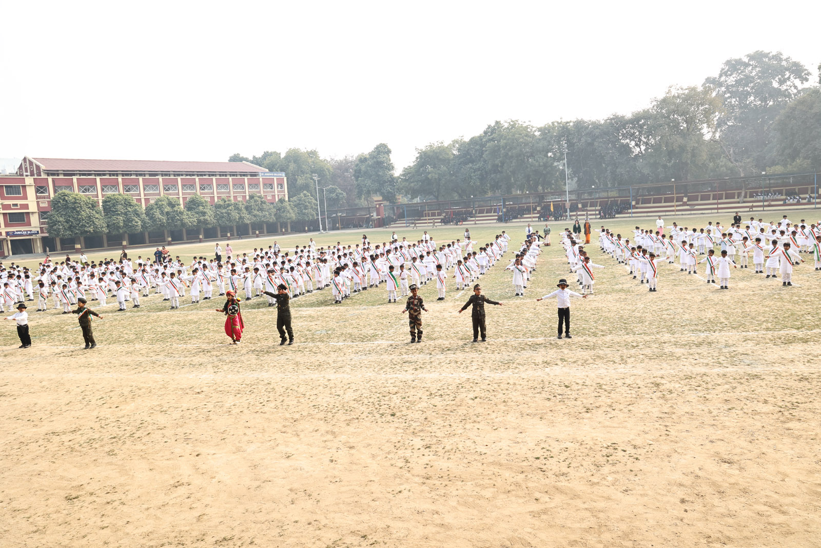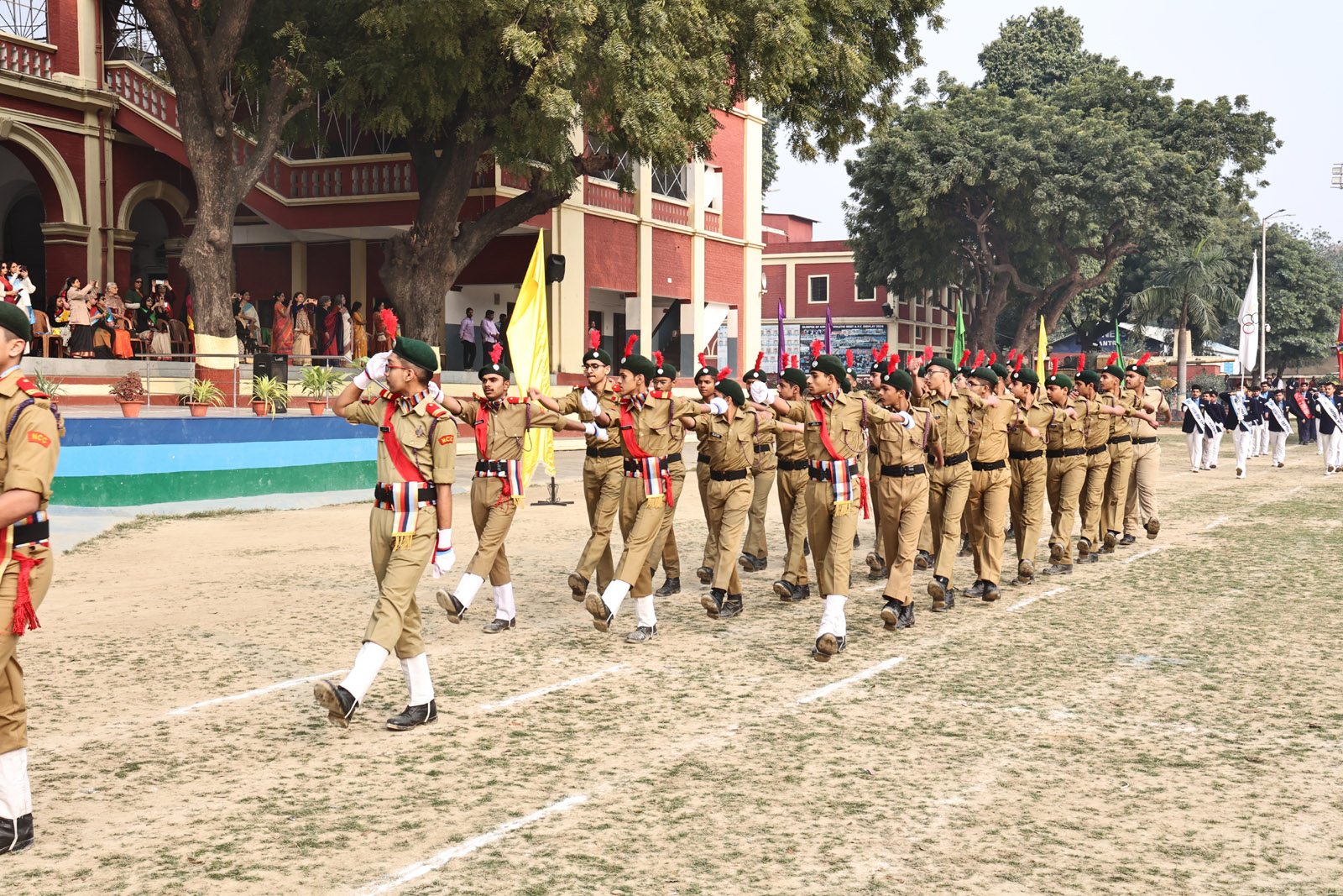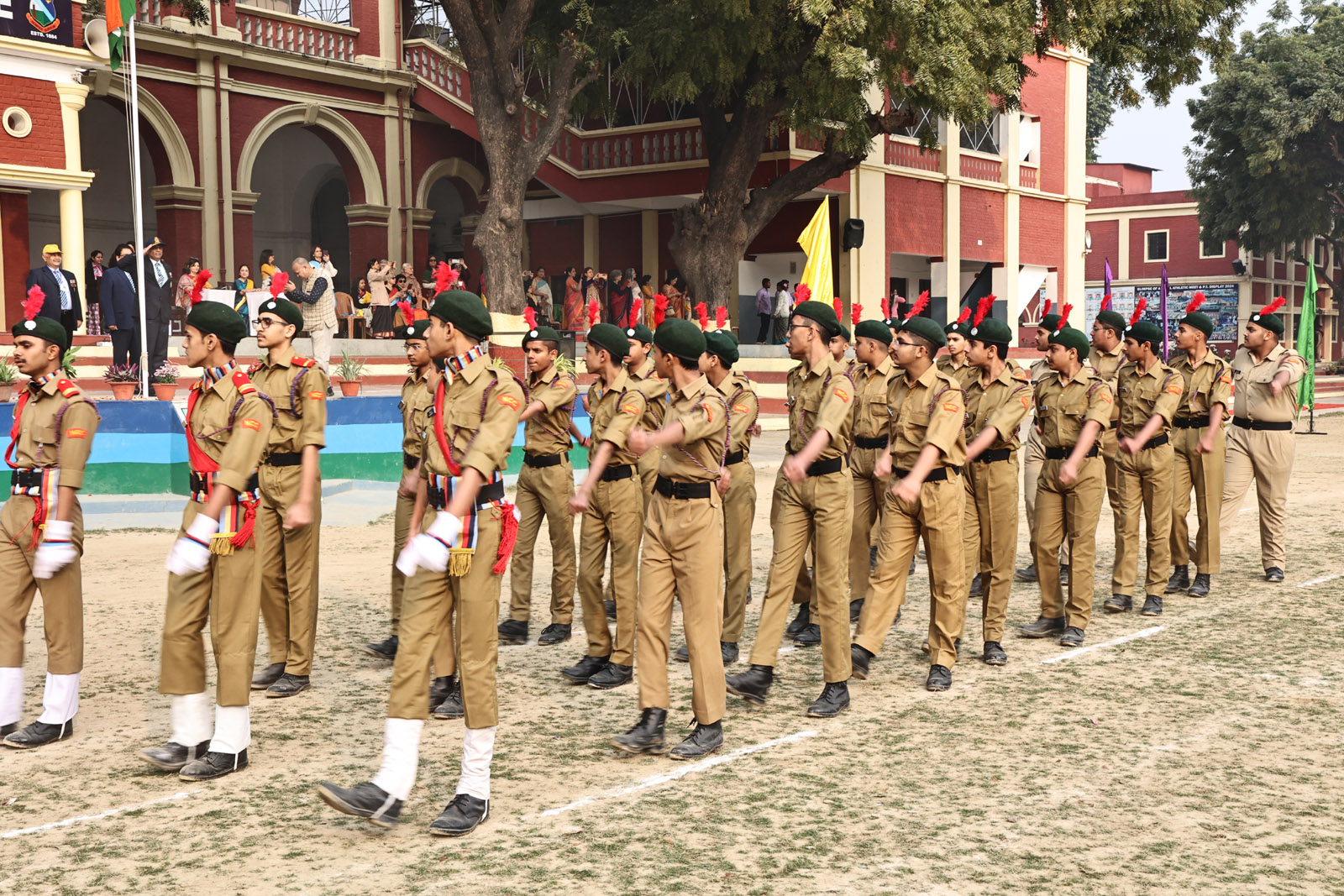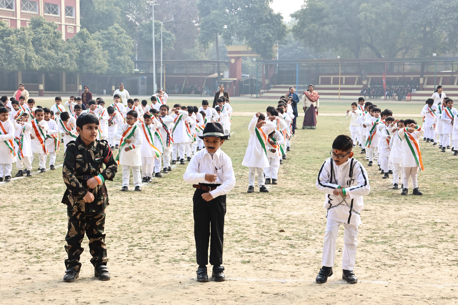 The most awaited moment of the programme was the hoisting of the National Flag. This sacred act was followed by the singing of the National Anthem, filling the atmosphere with pride and reverence. A well-coordinated March Past, symbolising discipline and unity, followed. A special highlight was the participation of the 1976 Golden Jubilee alumni, who, along with the current students, marched smartly and saluted the Chief Guest with impeccable synchronisation.