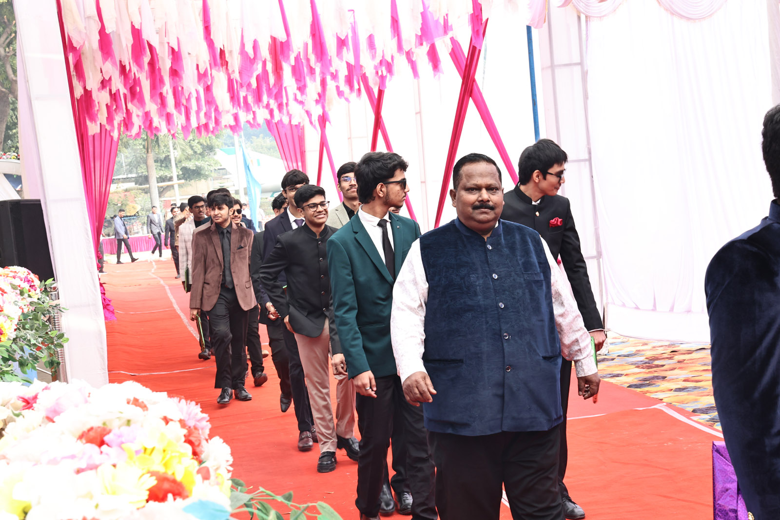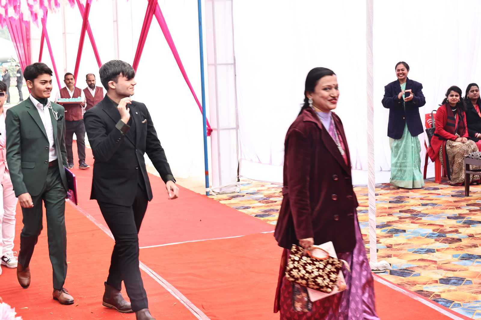 During the ceremony, the respected Class XII students were formally escorted by their respective Class Teachers, marking a symbolic passage from school life to the wider world. This dignified procession stood as a testament to the guidance, discipline, and values instilled in the students throughout their years at the institution. Class XII-A was escorted by Mr. A. Dixit, Class XII-B by Mrs. Sumona Banerjee, Class XII-C by Mr. Shashi Bhushan Rai, Class XII-D by Mr. N. B. Lawrence, and Class XII-E by Mrs. Lim Terry. The moment beautifully reflected the enduring bond between teachers and students, nurtured through years of mentorship, trust, and shared growth.