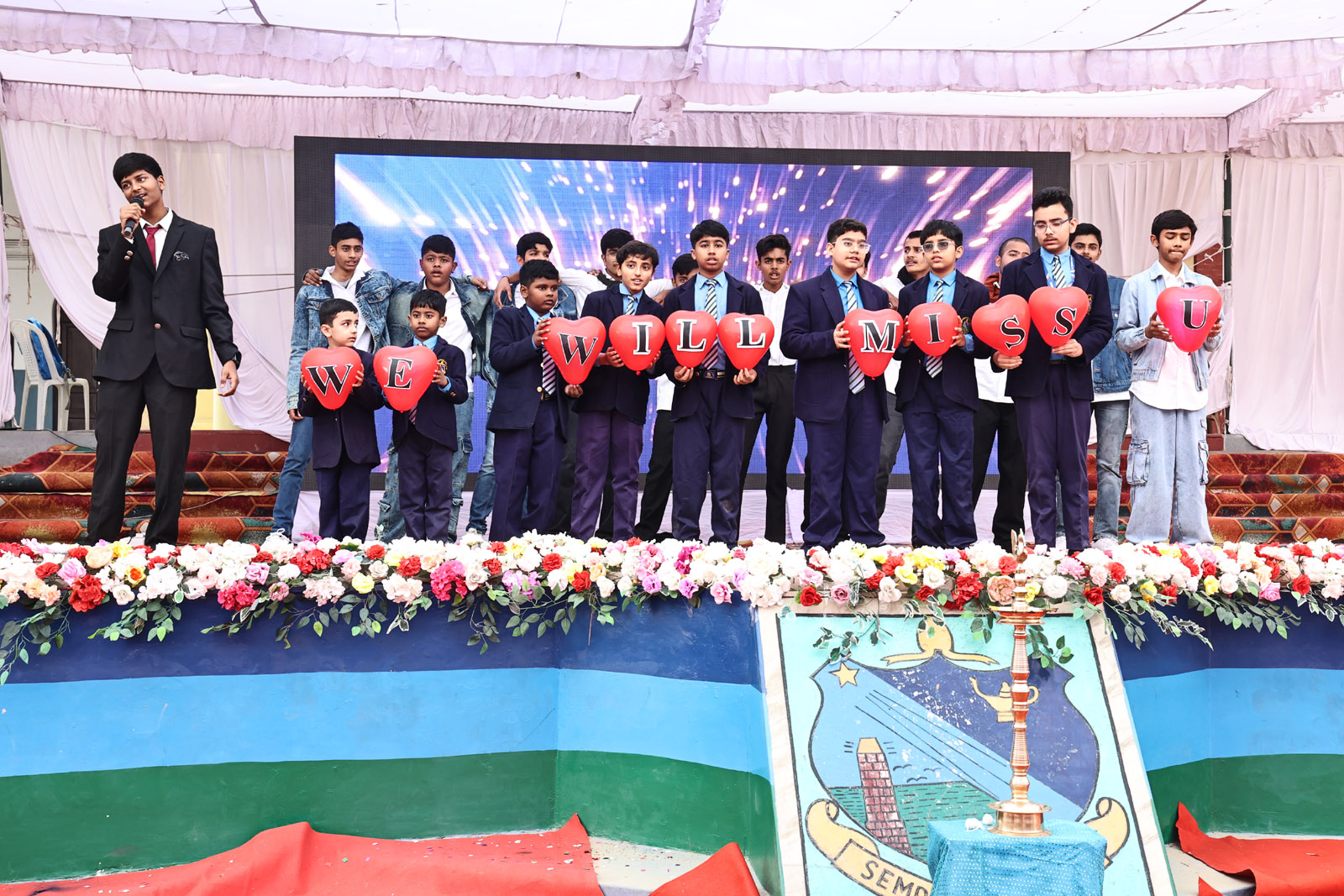 Vihaan Katiyar voiced the sentiments of Class XII-D, after which Mrs. Lim Terry delivered a thoughtful Teacher’s Message. Om Kartikey’s English poem showcased literary finesse, while the Farewell Movie, presented by the I.T. Association, nostalgically captured the journey of the batch. Heartfelt reflections by Shayaan Zaman (XII-E) and Shikhar Awasthi (XII-F) concluded the class addresses. The Class XII Special Performance emerged as the highlight of the programme, earning a thunderous ovation for its energy and emotion.