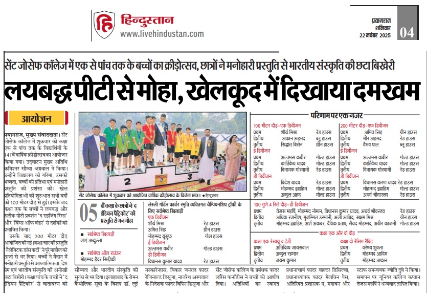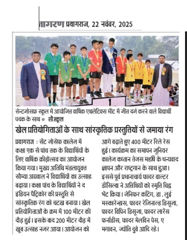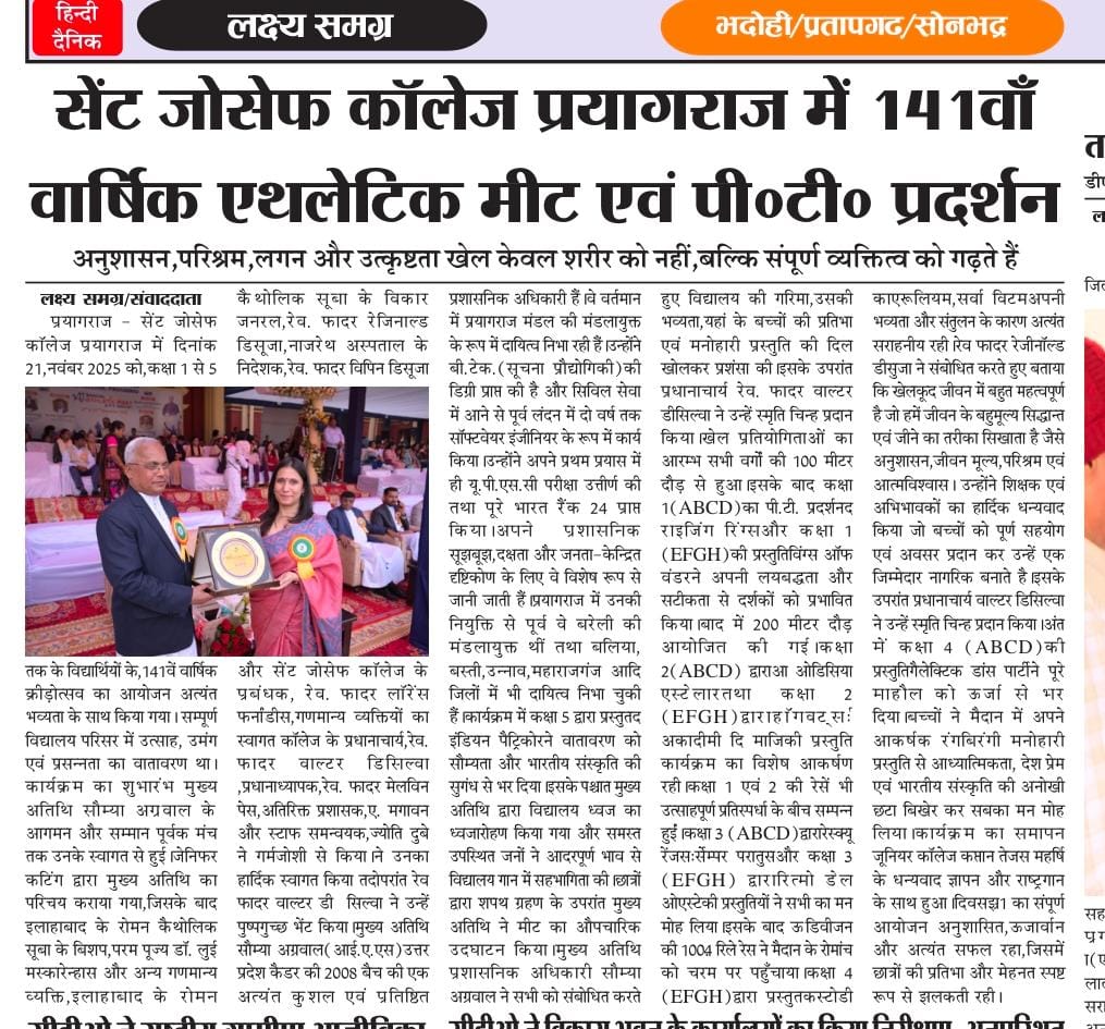 The year 1884 marked the genesis of an enduring legacy in the heart of Prayagraj, as the Capuchin Friars laid the cornerstone of St. Joseph’s College. Guided by the resolute motto ‘Semper Sursum’—Always Aim High—it stands today not only as an architectural marvel of the city but as a thriving community of nearly 7,000 scholars.Upholding this illustrious tradition, St. Joseph’s College organised Day One of the Post Centenary 141st Annual Athletic Meet and P.T. Display on the 21st of November, 2025. The event was a celebration of a sesquicentennial era defined by excellence, determination, and holistic development.