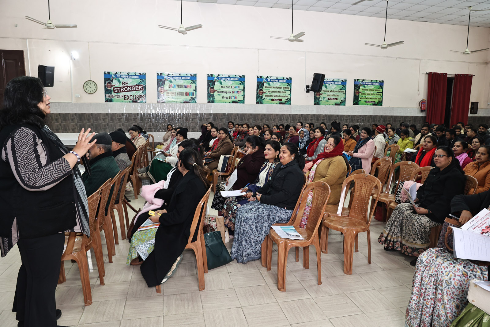 3rd January saw the staff of both St.Joseph's College and St.Joseph Girls'Wing along with the Principal, Rev.Fr.Walter D'Silva, Additional Administrator, Mr.Aubrey Mc Gowan and the Staff Coordinator Mr.Jyoti Dube congregate in the Hogan Hall to participate in an event organised by the collaborative efforts of Headward Publishing Company, ABP Education and Hachette Learning. Mrs.L.Terry introduced the Resource Person, Ms.Ruchi Sengar, an educator par excellence with diverse portfolios held over 25 years, at both the international and the national levels.