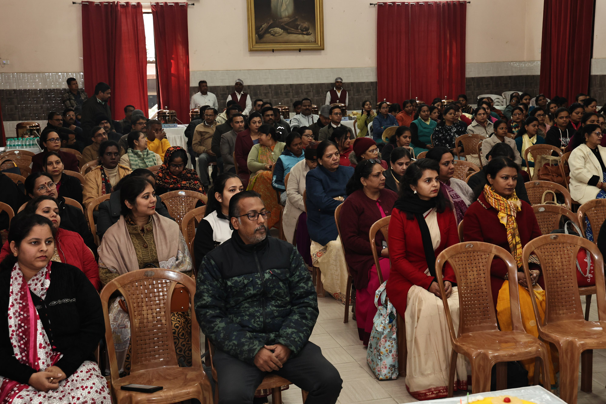 McGowan and the Staff Coordinator Mr. Jyoti Dube to the Hogan Hall. A reverential ambience was engendered by the Bible reading and a special prayer by Ms. Cynthia Paul, furthered by prayerful renditions by the Senior Section Choir, the KG Choir and the Primary Section Choir.