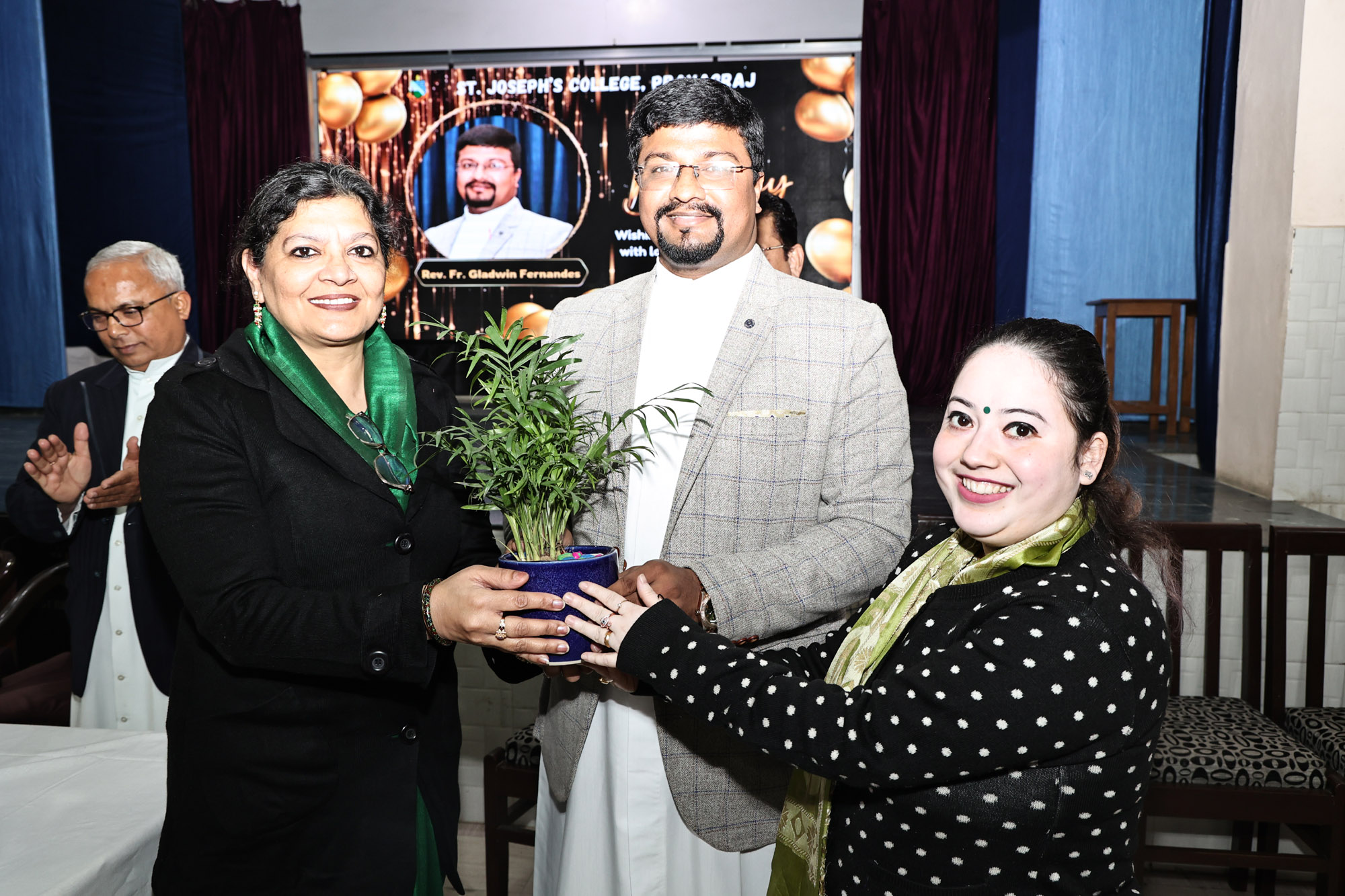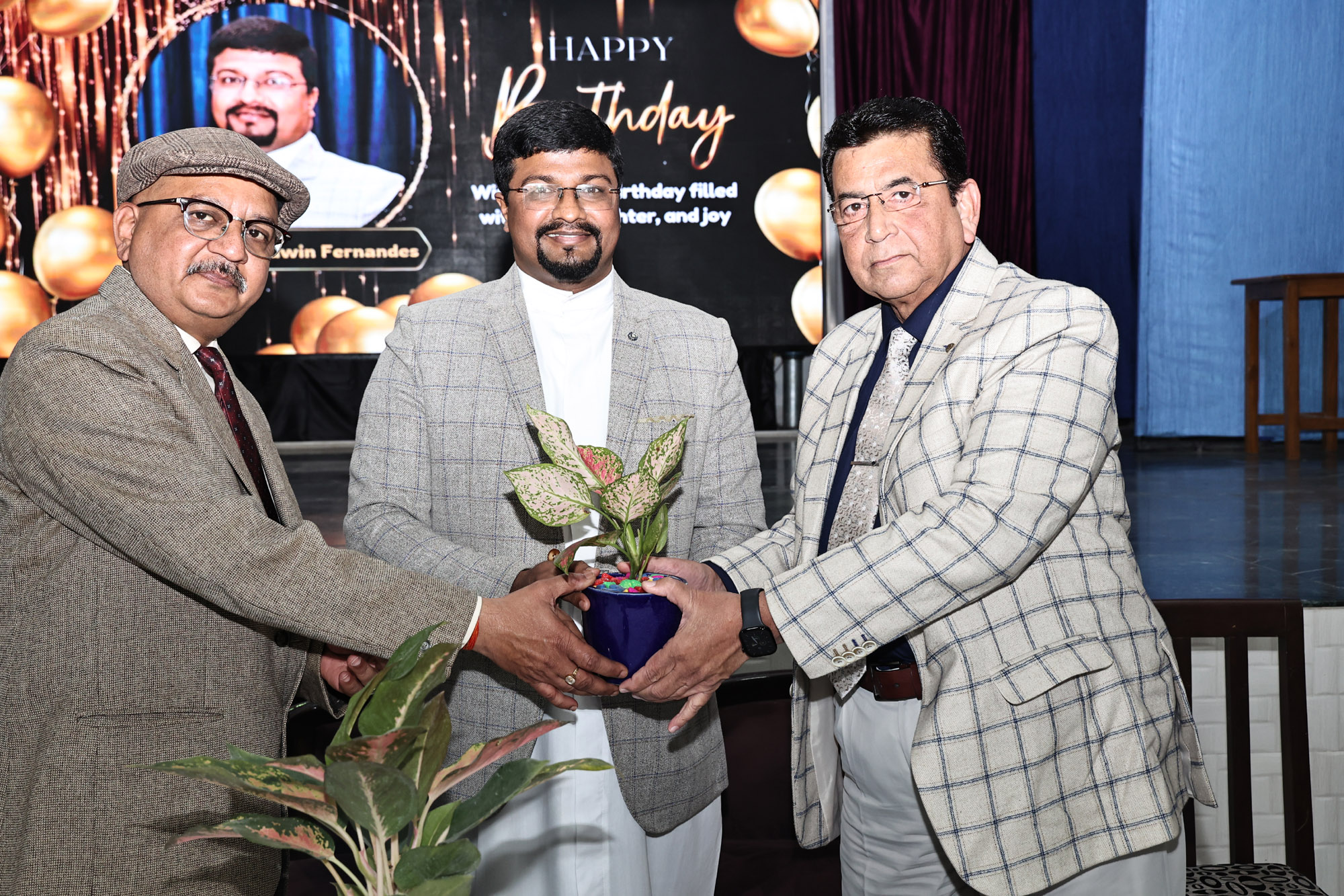 Exalting the sterling qualities of head and heart of Rev. Fr. Gladwin Fernandes, Rev. Fr. Walter D'Silva invoked God's choicest blessings on the compassionate and dedicated Administrator. The presentation of saplings by the Management, representatives of the Office and Teaching Staff, the KG Coordinator Ms. Saumya Prakash and the School Counsellor Dr. Aparna Ranjan, served to accentuate the atmosphere of joyful gratitude.