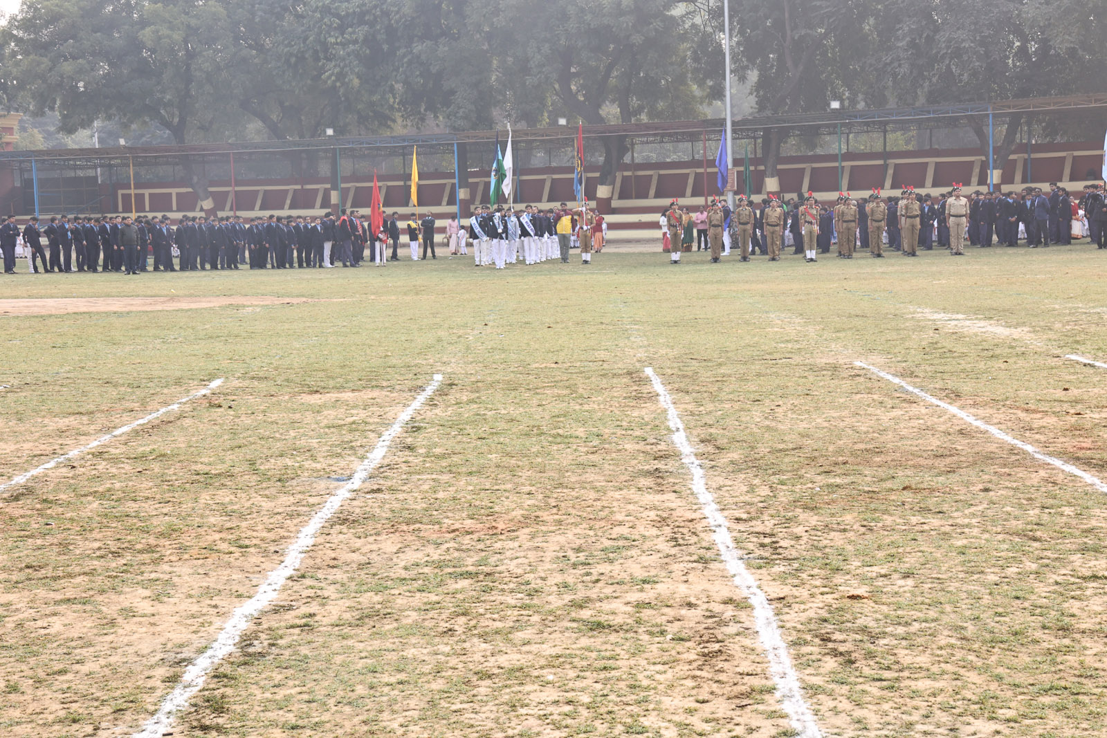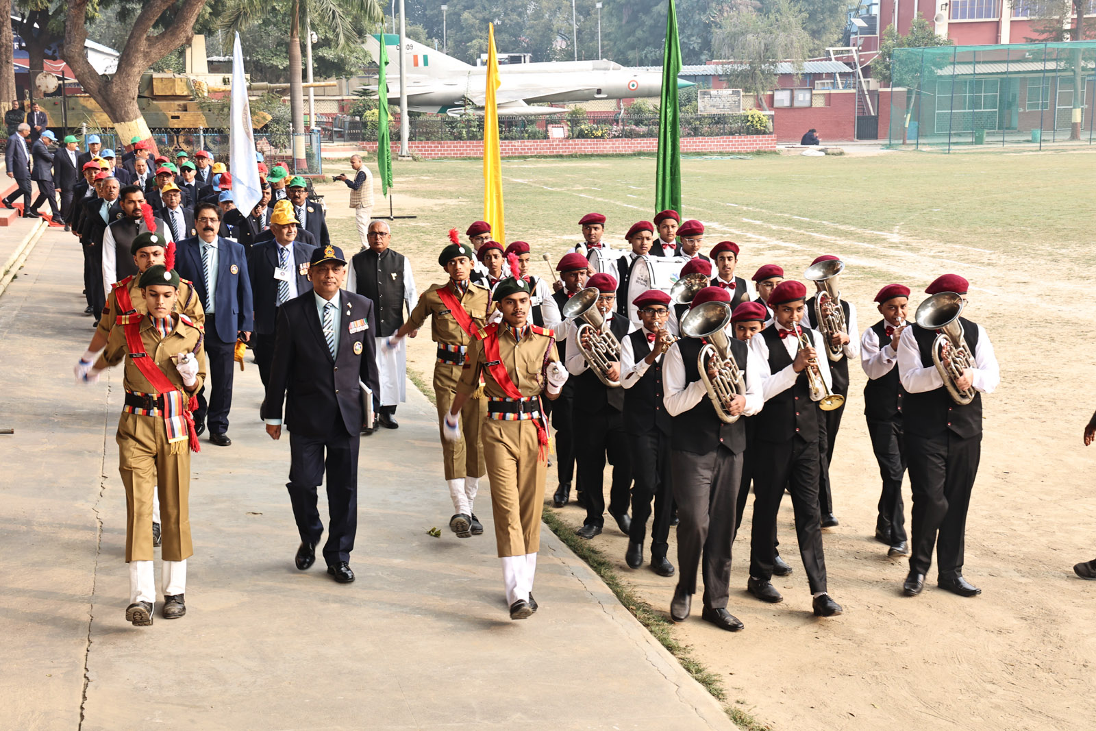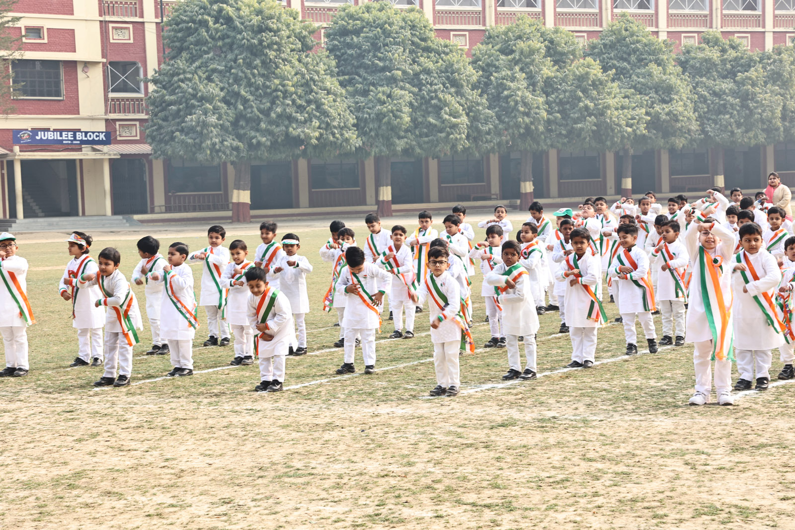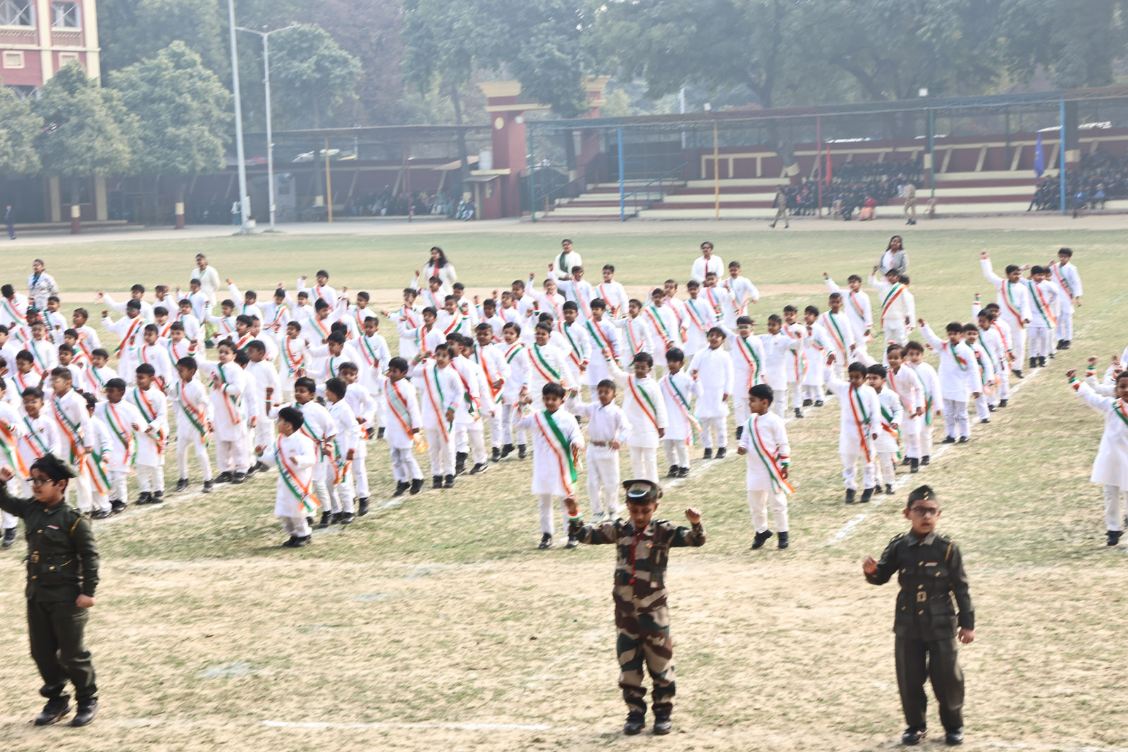 The most awaited moment of the programme was the hoisting of the National Flag. This sacred act was followed by the singing of the National Anthem, filling the atmosphere with pride and reverence. A well-coordinated March Past, symbolising discipline and unity, followed. A special highlight was the participation of the 1976 Golden Jubilee alumni, who, along with the current students, marched smartly and saluted the Chief Guest with impeccable synchronisation.