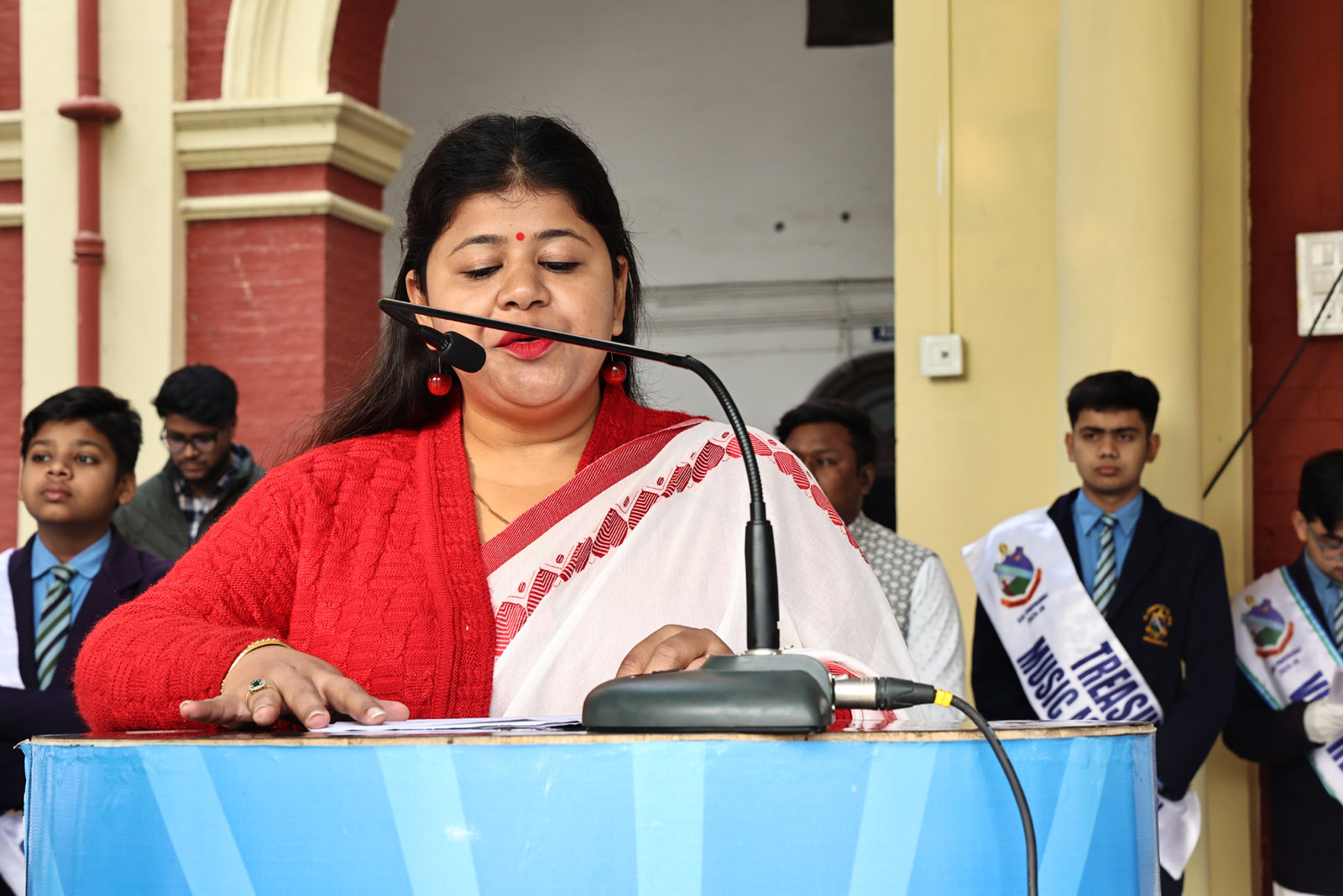 The programme commenced with the welcome of the honoured guests. The proceedings were efficiently conducted by the College Vice Head Marshal, Shaurya Goswami. The formal inauguration took place with a Bible reading and prayer by Ms Priyansha Simon, followed by a melodious prayer hymn presented by the School Choir, setting a reverent tone for the occasion.