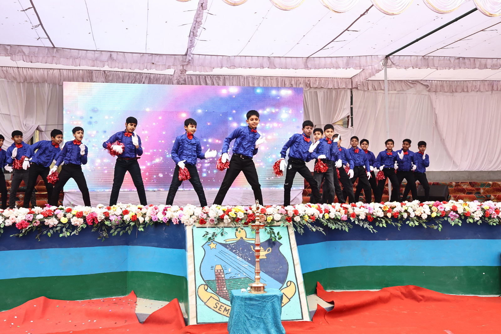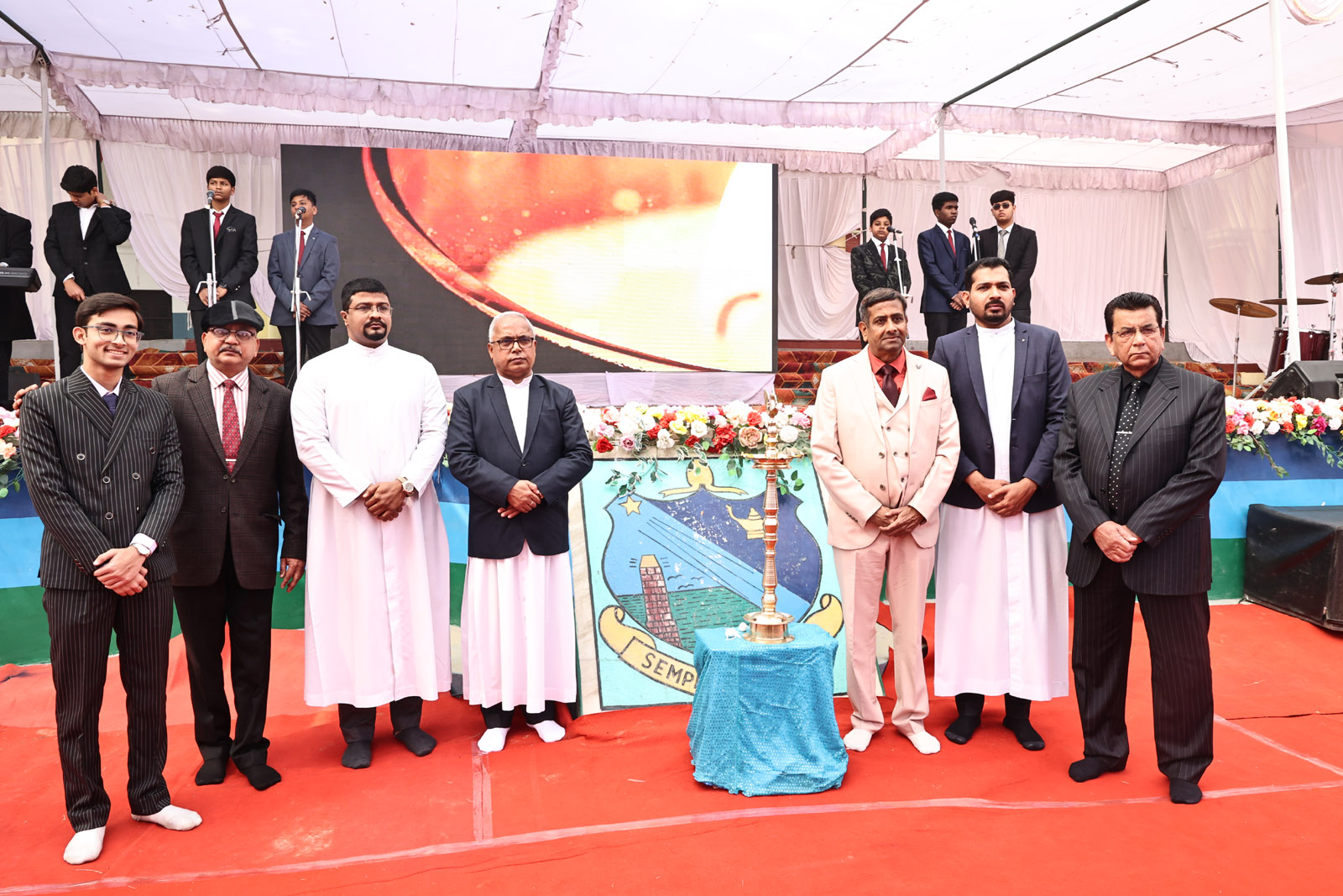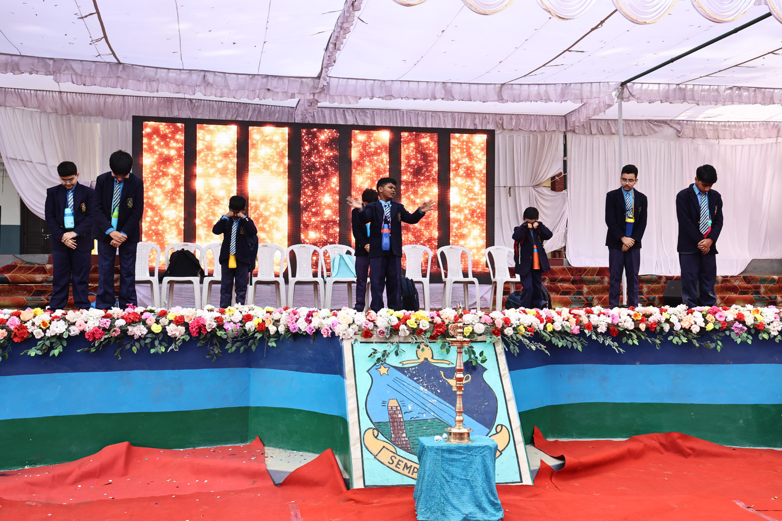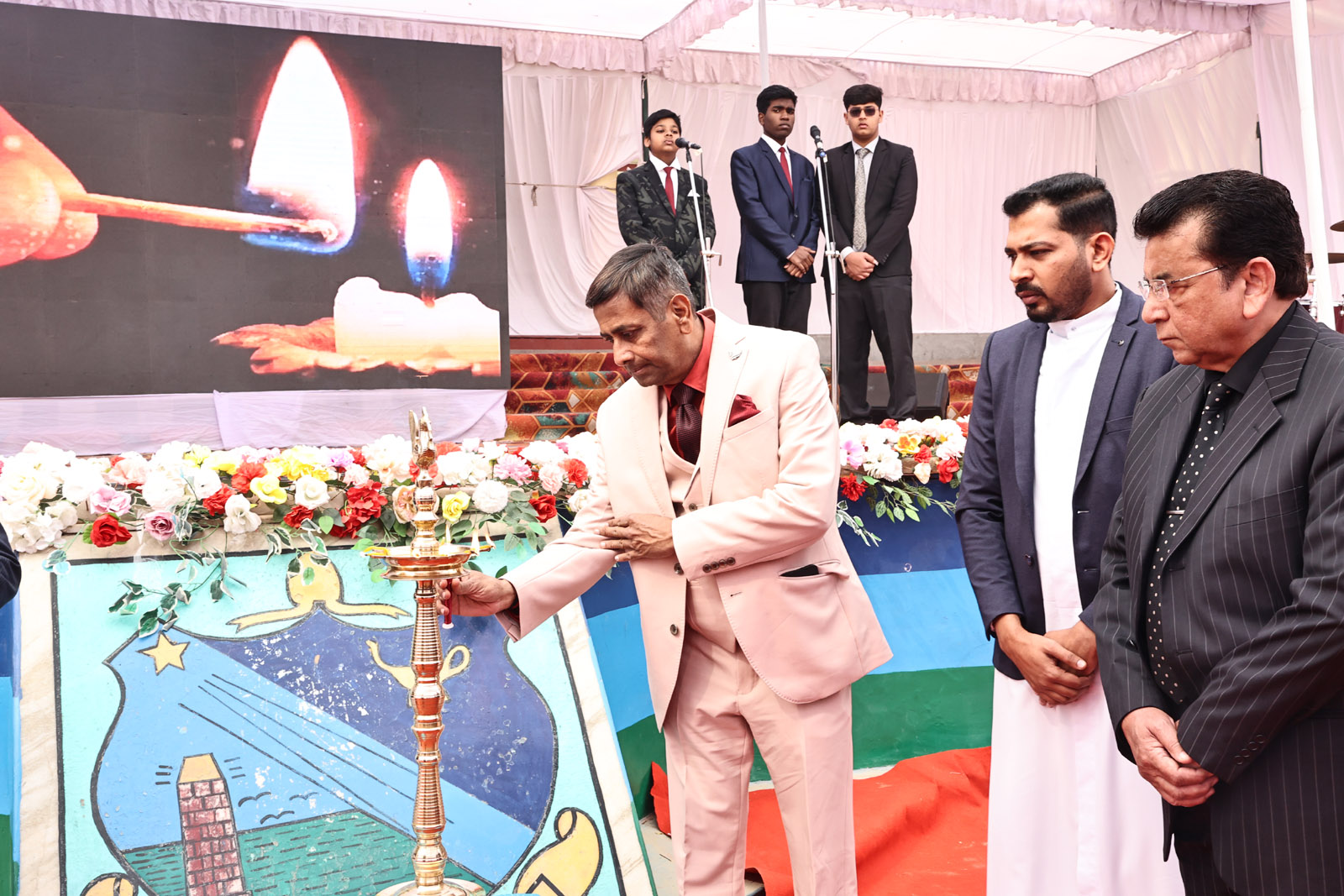 The programme commenced with a gracious Welcome Address by Stavya Agrawal, followed by the Lighting of the Ceremonial Lamp by members of the administration, the Staff Coordinator, the Reverend Fathers, and the Parent Representative, Mr. Amit Mishra, symbolising the illumination of knowledge and wisdom. The College Anthem, sung by the College Choir, filled the hall with pride and unity, after which Saransh John led the gathering in prayer. Adding a delightful touch, students of Classes I to V presented a Prayer Song and Dance, captivating the audience with their innocence and enthusiasm.