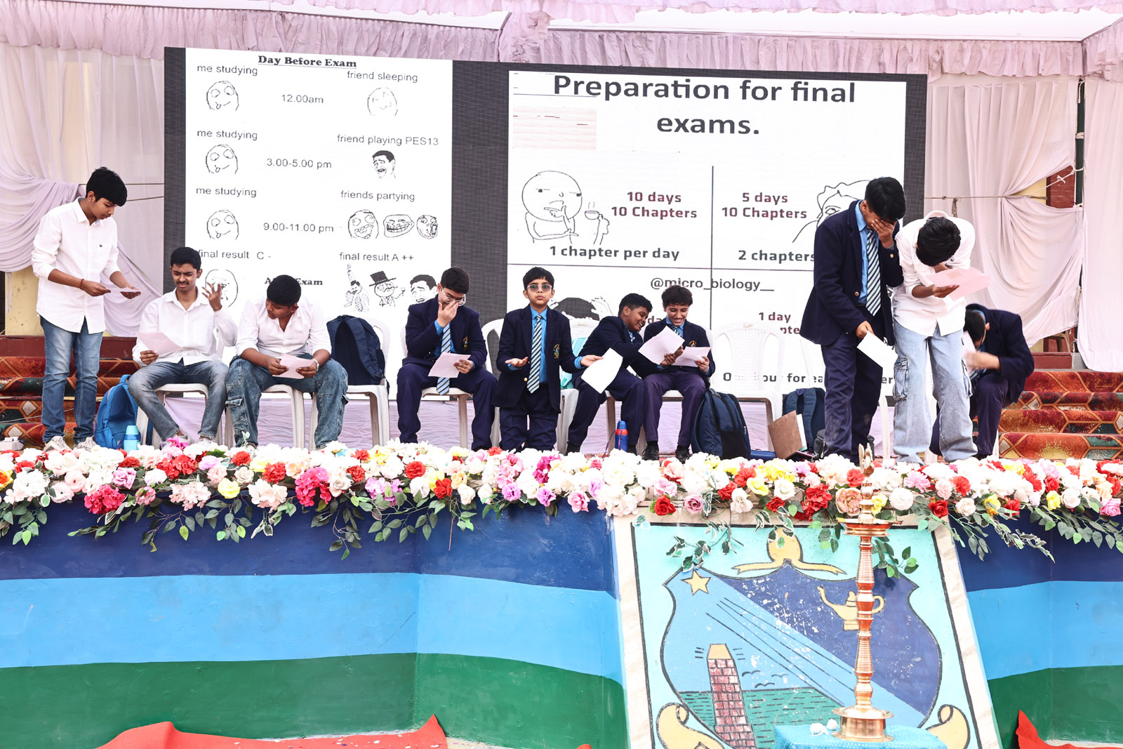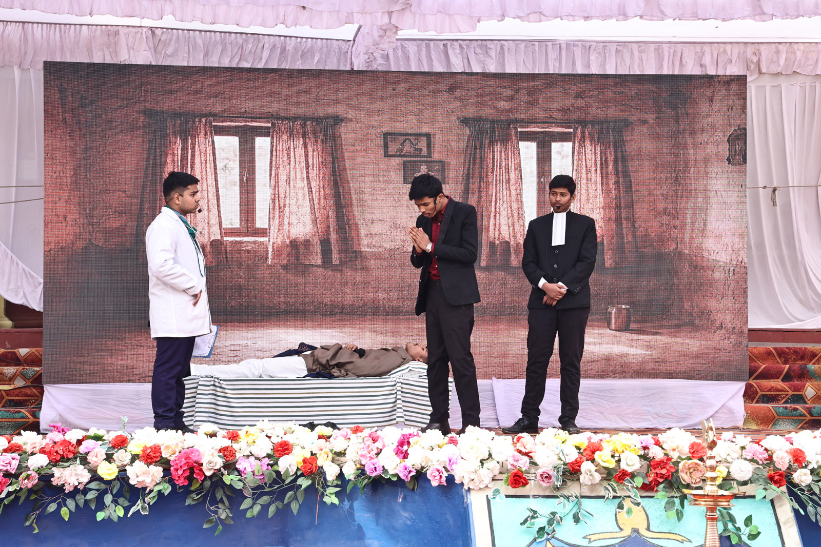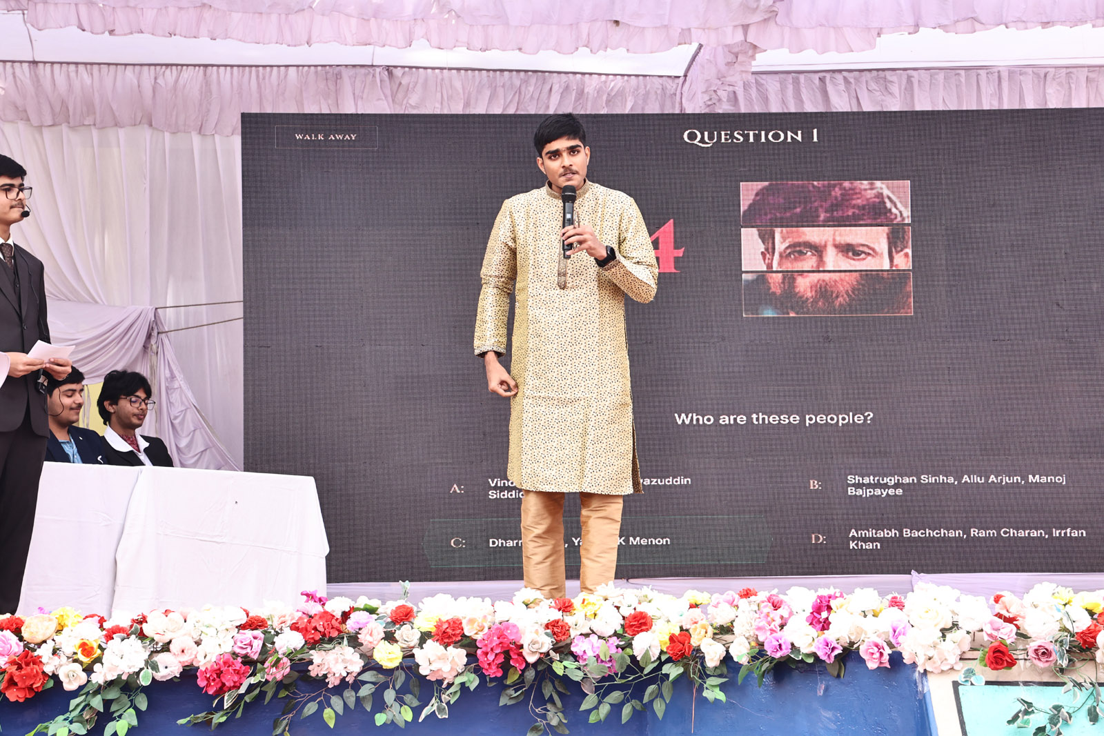 A Hindi skit by the Class XI students brought humour and reflection to the stage. Vikhyaat Mishra presented the Class XII-C Address, followed by a warm Teacher’s Message by Mr. Shashi Bhushan Rai. A special interactive game conducted by Shaurya Goswami and Mohd. Ismail added moments of joy and camaraderie.
