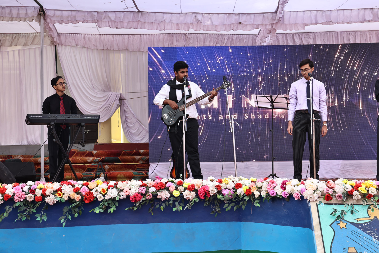 A heartfelt Teachers’ Video Message, featuring Ms. Renu Sarkar and Mrs. Rekha Shukla, deeply moved the audience with words of encouragement and affection. Nishkarsh Gupta delivered the Class XII-A Address with eloquence, followed by a thoughtful Teacher’s Address by Mrs. Sabha Khan. A melodious musical performance by students of Classes IX and XI was warmly applauded. Mohd. Arkaan Khan then spoke on behalf of Class XII-B, expressing gratitude and shared memories.